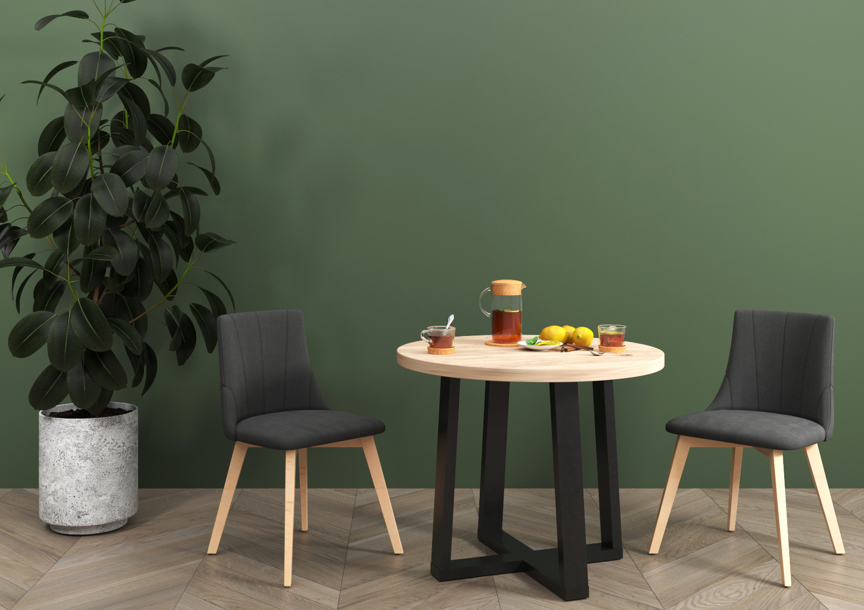 Kulatý jídelní stůl STL 90 vás zaujme svým moderním designem. Horní deska je vyrobena z kvalitního lamina a mohutná podnož je z masivního odolného dřeva.