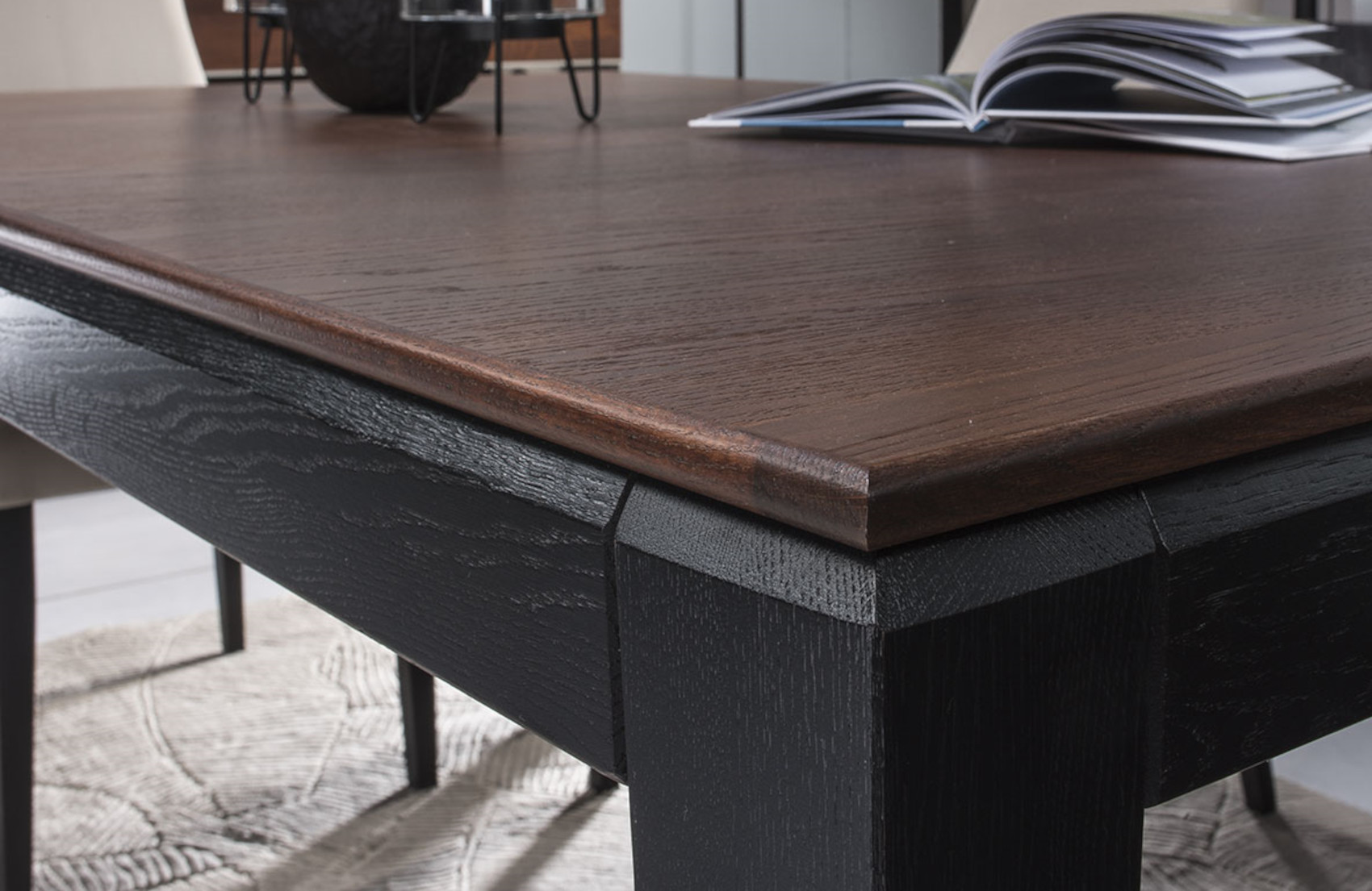 Rozkládací jídelní stůl Fuego vás zaujme svým přírodním designem s viditelnou strukturou dřevěných lét. Nohy jsou vyrobeny z masivního dubového dřeva a horní deska z přírodní dubové dýhy. Máte možnost si vybrat ze 3 odstínů (v nabídce máme ještě 2 odstíny: dub zlatý-med a dub artisan-bianco, v případě zájmu nás kontaktujte).