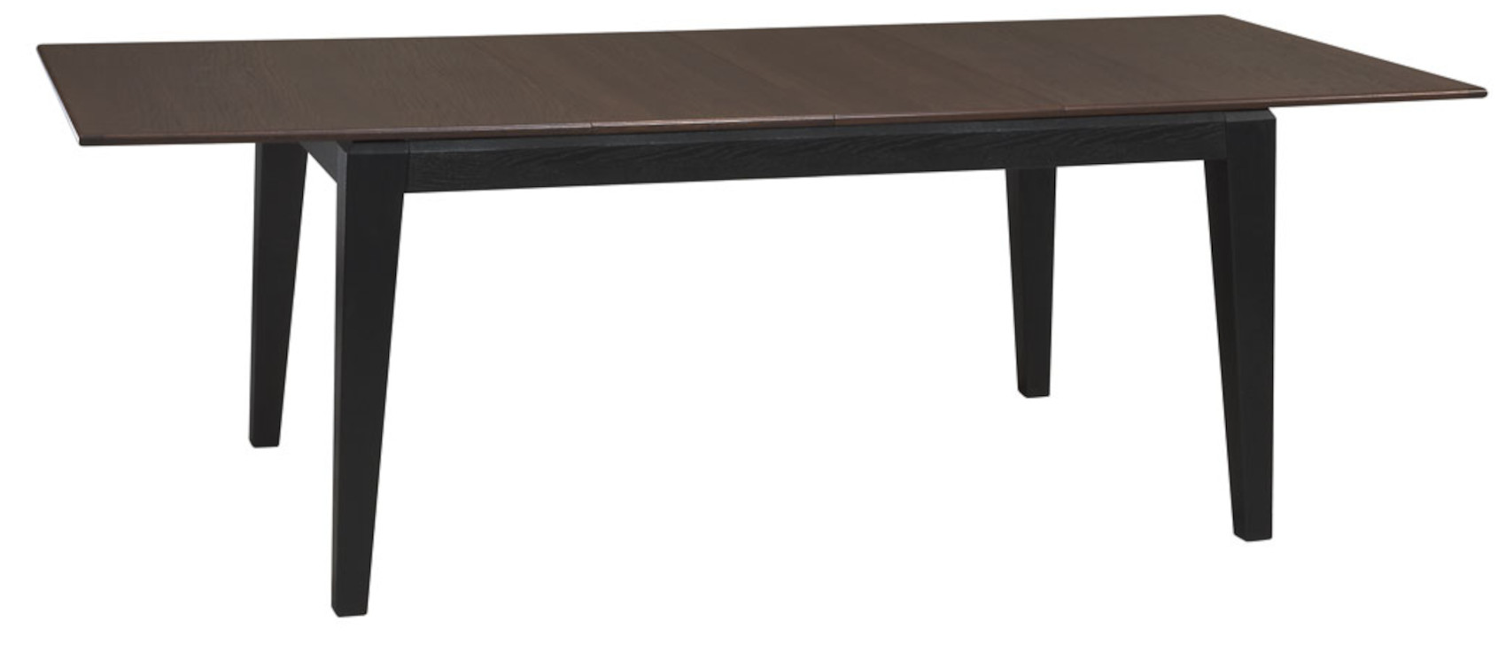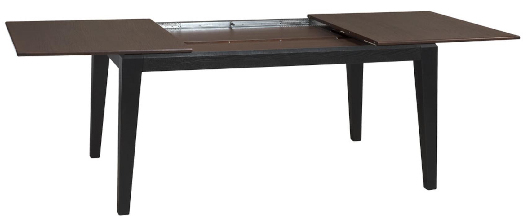 Díky kovovému kolejnicovému systému můžete stůl rozložit do šířky od 160 cm do 240 cm. Pod horní deskou jsou vloženy 2 dřevěné vklady.