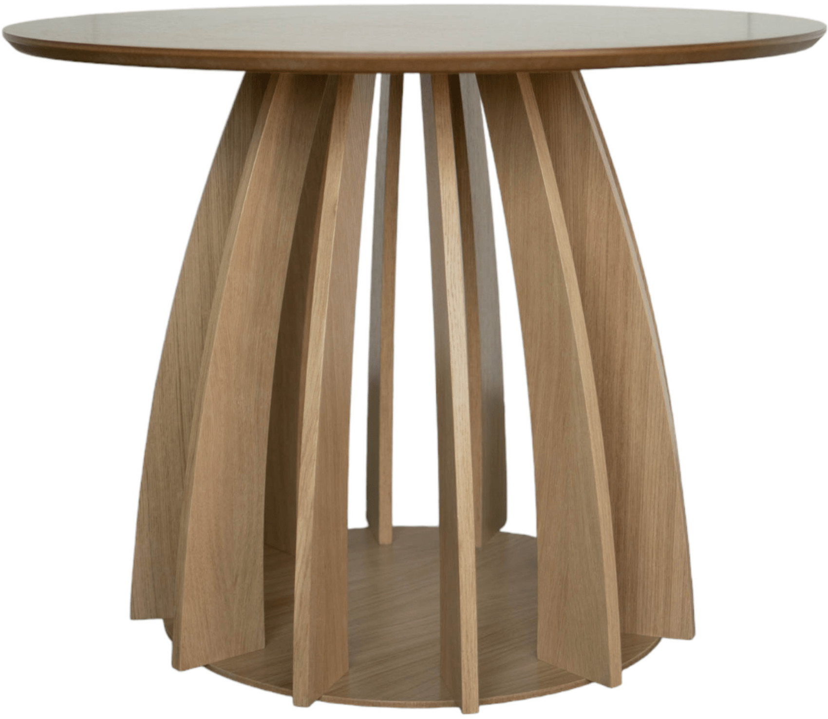 Kulatý jídelní stůl STL 220 má horní desku vyrobenou z kvalitního lamina a moderní podnož z masivního odolného dřeva.