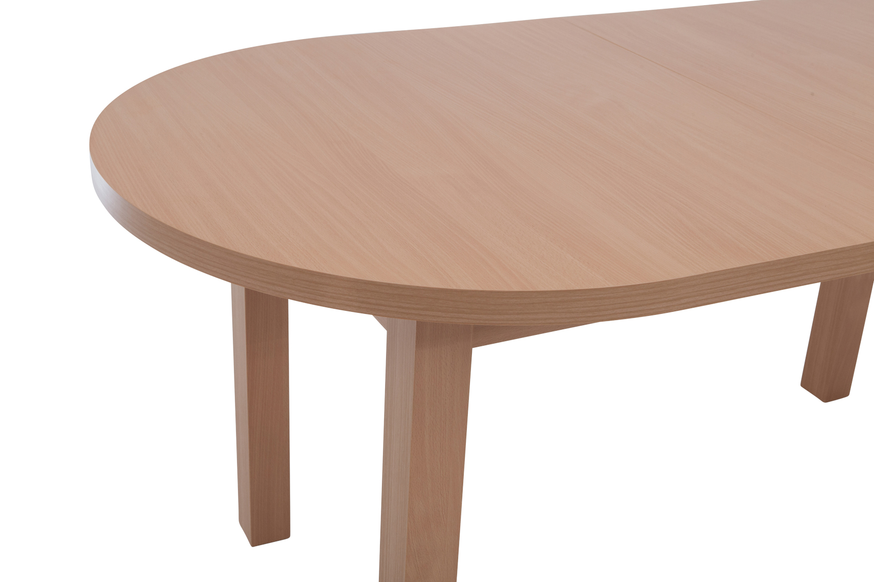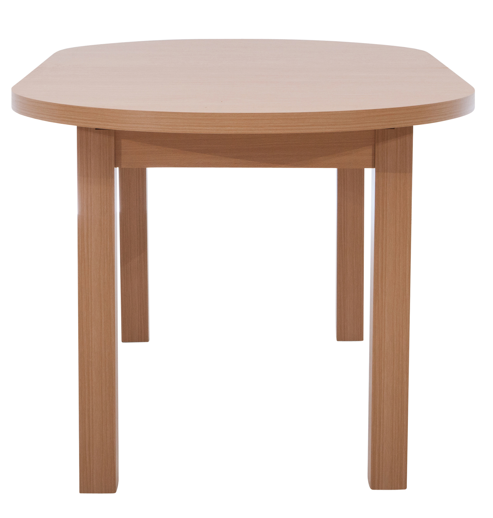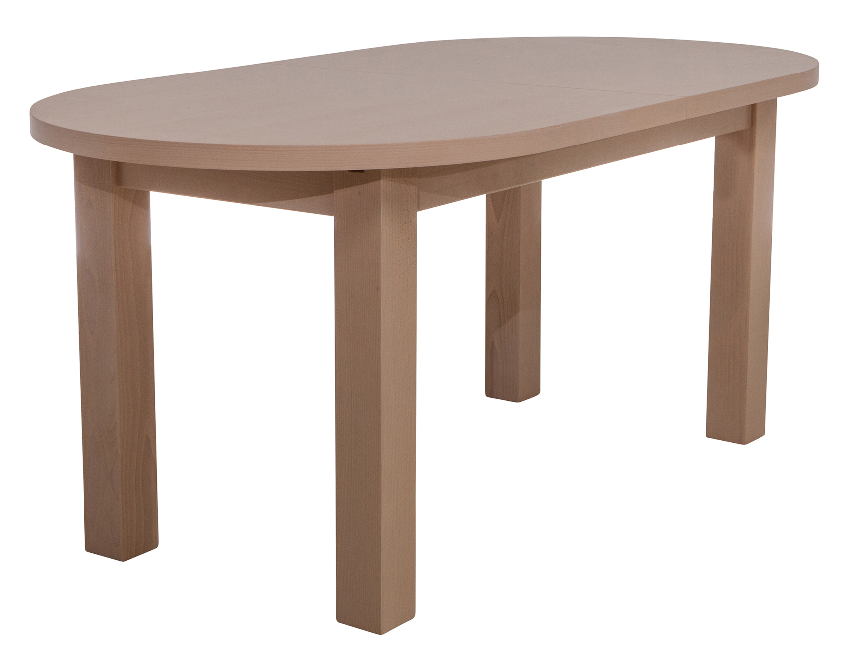 Rozkládací jídelní stůl STL 02 má horní desku vyrobenou z kvalitního lamina a nohy z masivního bukového dřeva.