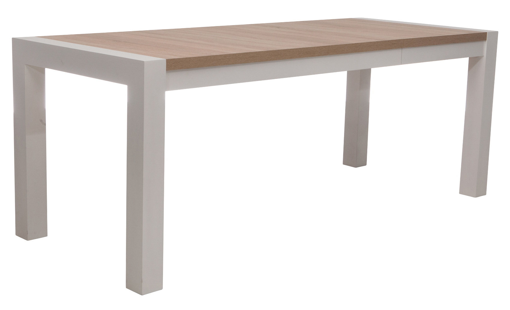 Pomocí kovového kolejnicového systému můžete stůl rozložit do šířky od 140 do 200 cm. Pod horní deskou jsou vloženy dřevěné vklady.
