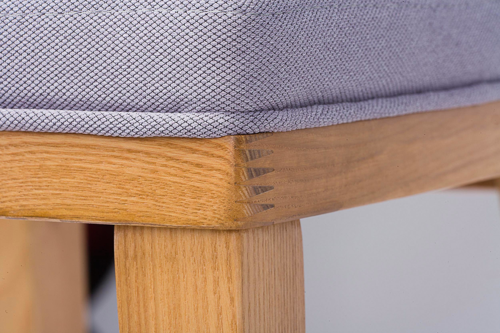 Moderní židle V6 vás zaujme svým jednoduchým a elegantním designem. Skelet je vyroben z masivního dubového dřeva zaručující kvalitu, odolnost a stabilitu. Sedák je vyplněn HR pěnou, která vám zajistí měkké a pohodlné sezení při obědu či večeři. Židle je částečně očalouněna potahovou látkou. Nabízíme vám mnoho variant moření dřeva a odstínů látky. Je pouze na vás, jakou kombinaci si vyberete.