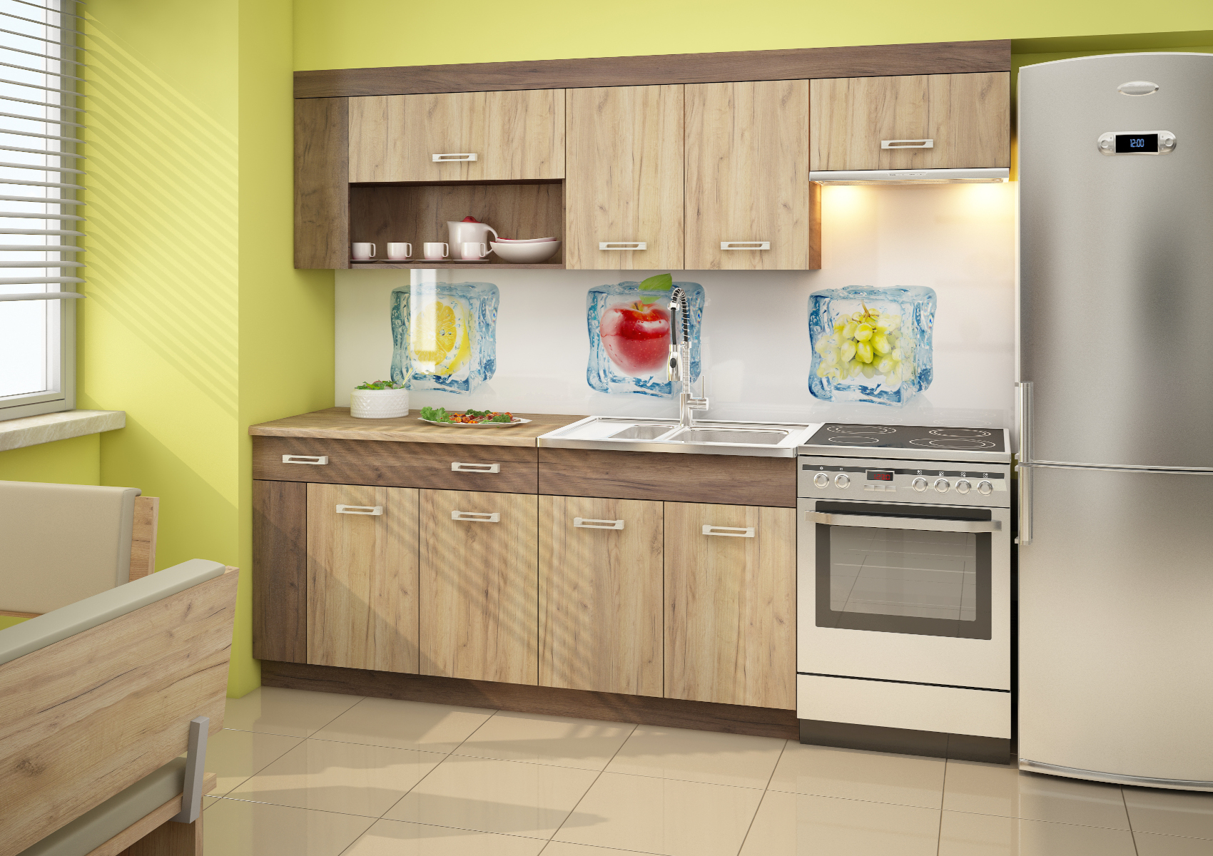 Kuchyňská linka Viza Plus 1 vás zaujme svým moderním přírodní designem. Je vyrobena z lamina o šířce 16 mm a 25 mm, které vám zaručí kvalitu. Desky mají ABS hranění, které zvyšuje odolnost proti odštípnutí hran. Linku dodáváme včetně pracovní desky, která je vždy ve stejném dekoru jako přední části skříněk (pravá strana vzorku). Dekor pracovní desky nelze změnit! Nabízíme vám několik barevných variant moření linky.