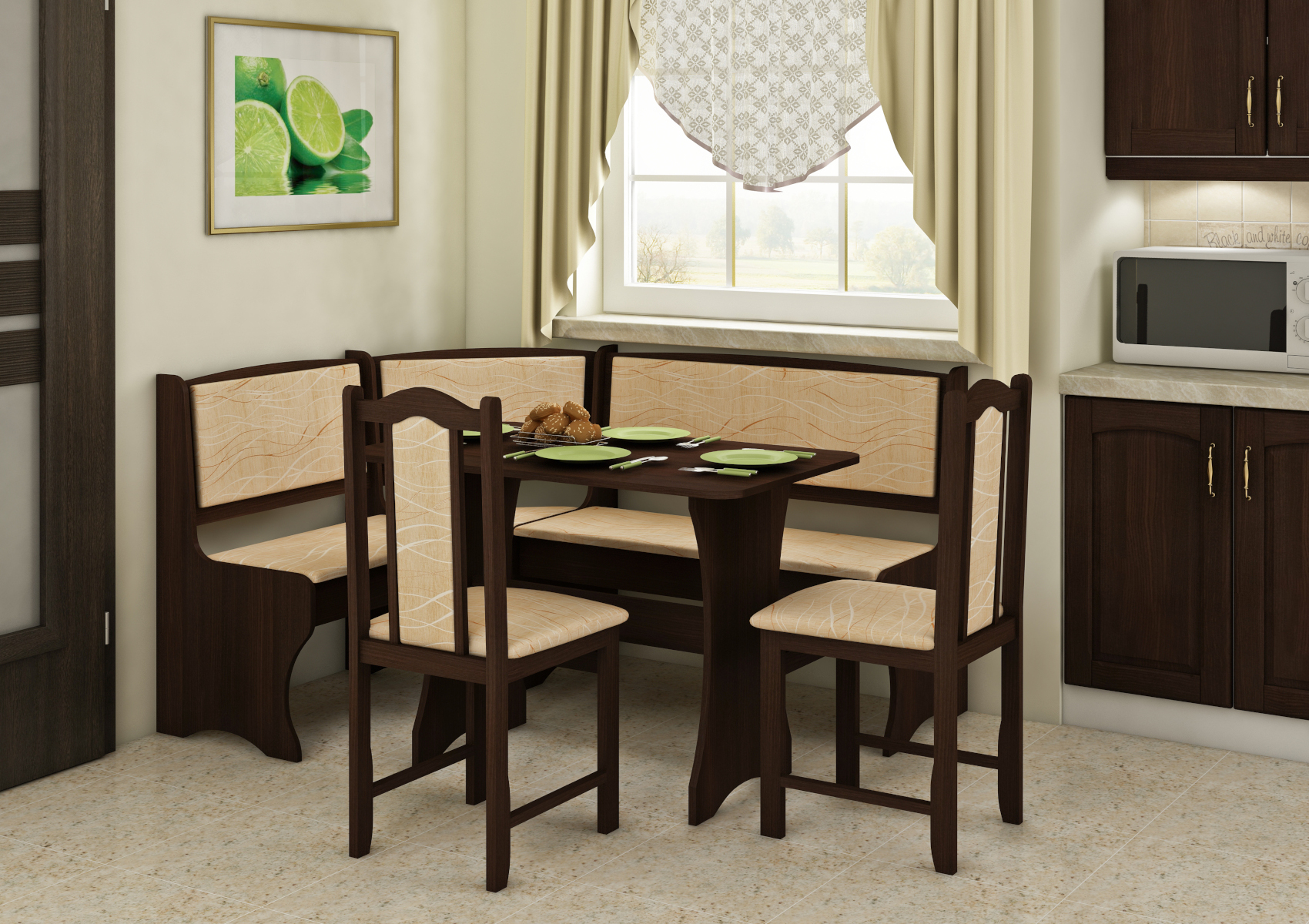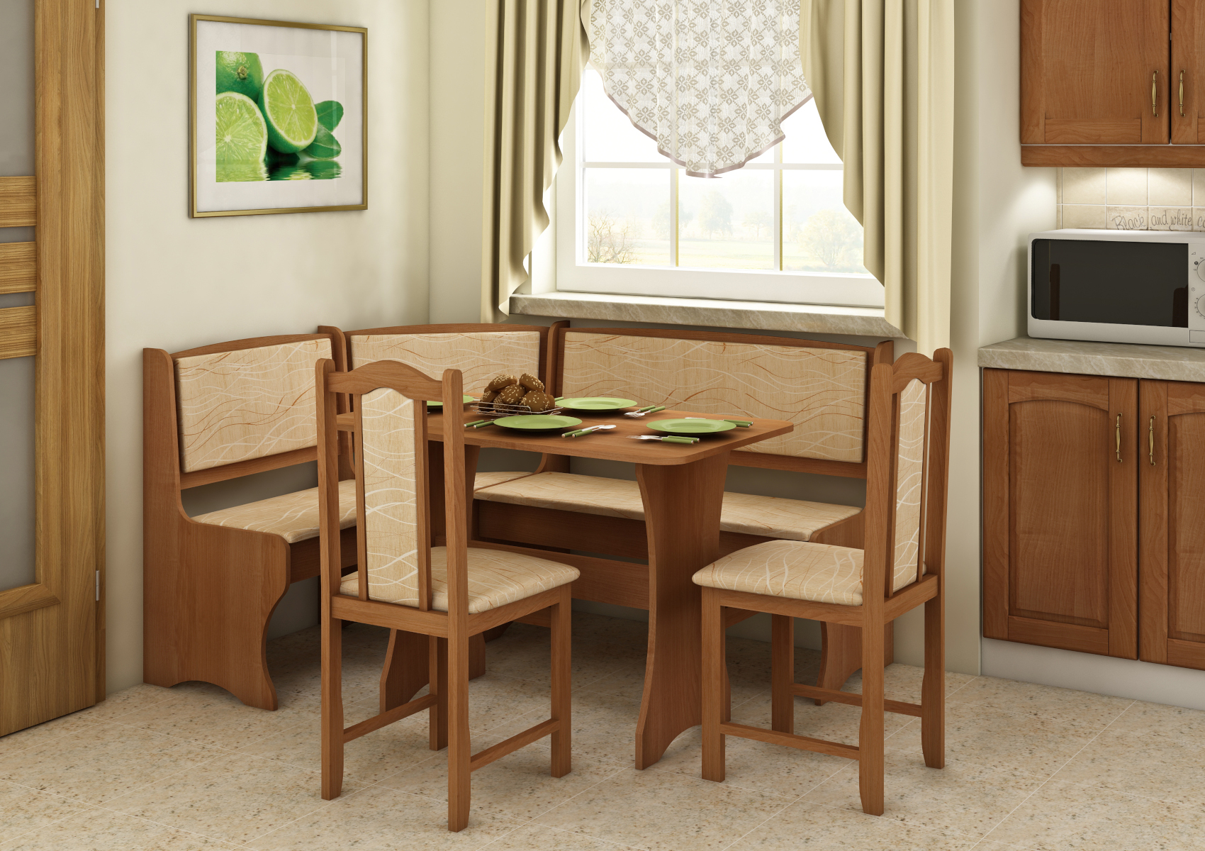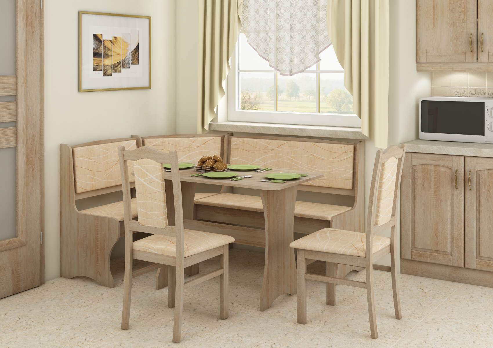 Rohová jídelní lavice se stolem a židlemi vás zaujme svým jednoduchým designem. Je velmi praktickým nábytkem i do menší jídelny. Nábytek je vyroben z lamina o šířce 16 mm, které vám zaručí kvalitu. Desky mají ABS hranění, které zvyšuje odolnost proti odštípnutí hran. Sedáky a opěrky jsou očalouněny látkou Monaco. Nabízíme vám několik barevných variant moření.