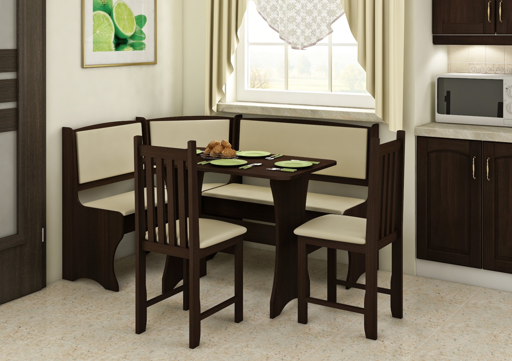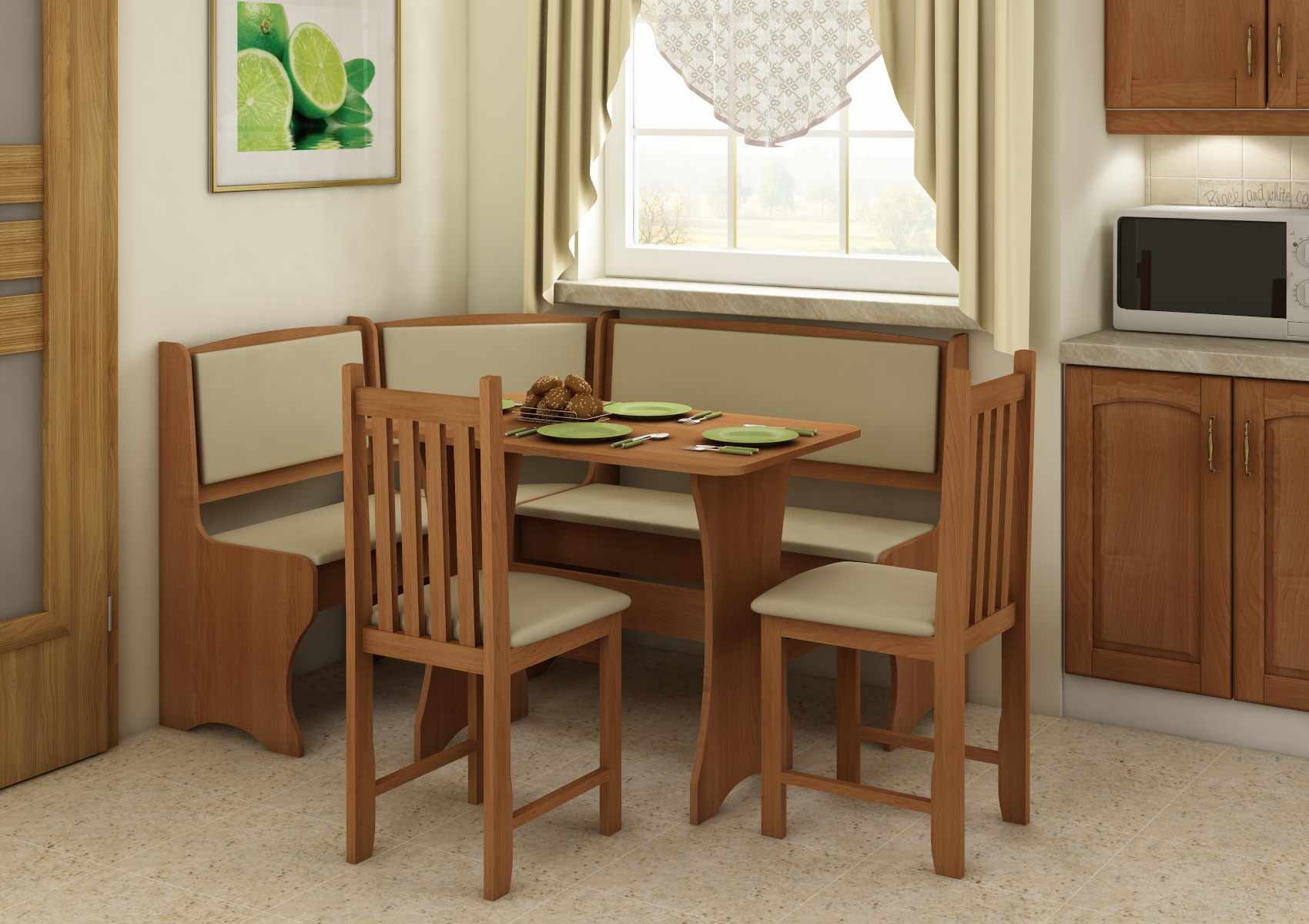 Rohová jídelní lavice se stolem a židlemi vás zaujme svým jednoduchým designem. Je velmi praktickým nábytkem i do menší jídelny. Nábytek je vyroben z lamina o šířce 16 mm, které vám zaručí kvalitu. Desky mají ABS hranění, které zvyšuje odolnost proti odštípnutí hran. Sedáky a opěrky jsou očalouněny béžovou ekokůží. Nabízíme vám několik barevných variant moření.