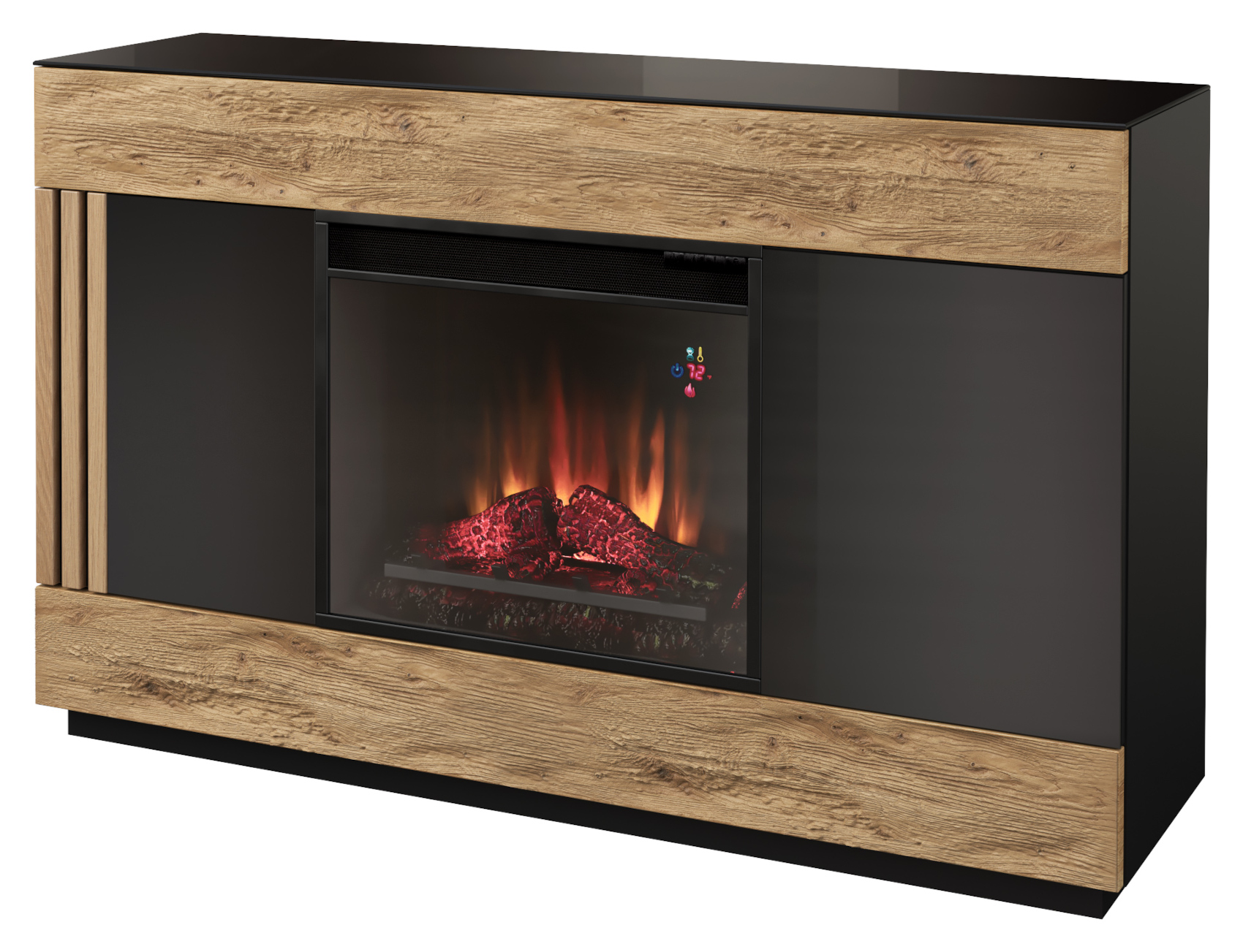 Elektrický krb Gintaro je vyroben z masivního dubového dřeva a přírodní dubové dýhy s černými lakovanými prvky. Horní deska je vyrobena z lakovaného černého skla Lacobel. Čtyřvrstvá technologie povrchového moření a lakování dává nábytku jedinečný design s výraznou strukturou lét masivního přírodního dřeva.