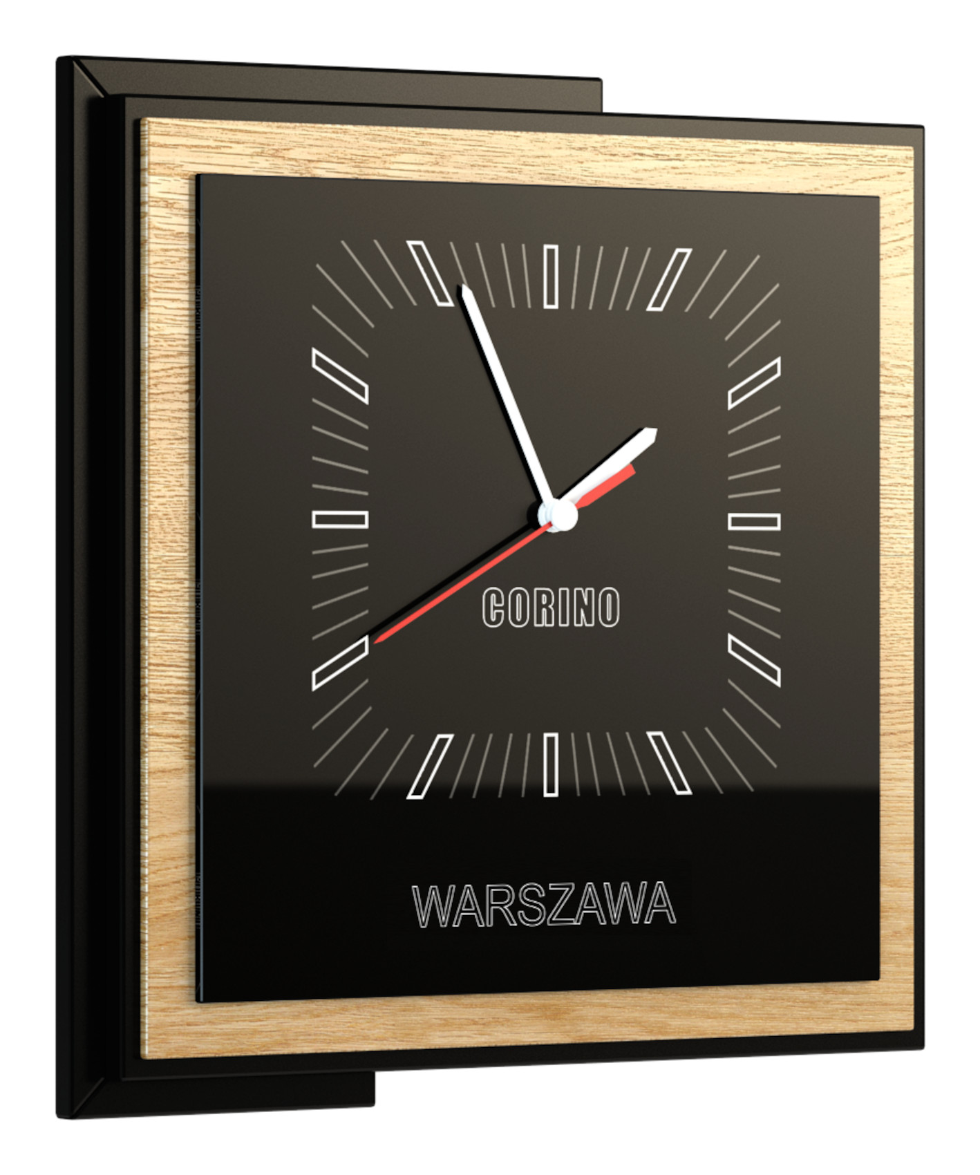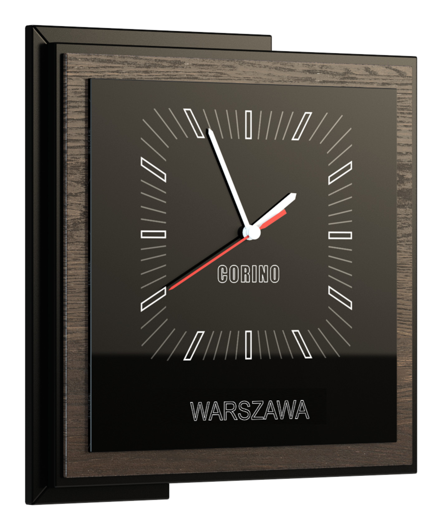 Hodiny Corino vás zaujmou moderním a luxusním designem. Jsou vyrobeny z přírodní dubové dýhy a černého skla Lacobel. Díky kvalitnímu lakování a moření má nábytek přírodní vzhled masivního dřeva a jsou viditelné struktury lét. Máte na výběr ze 2 barevných variant.