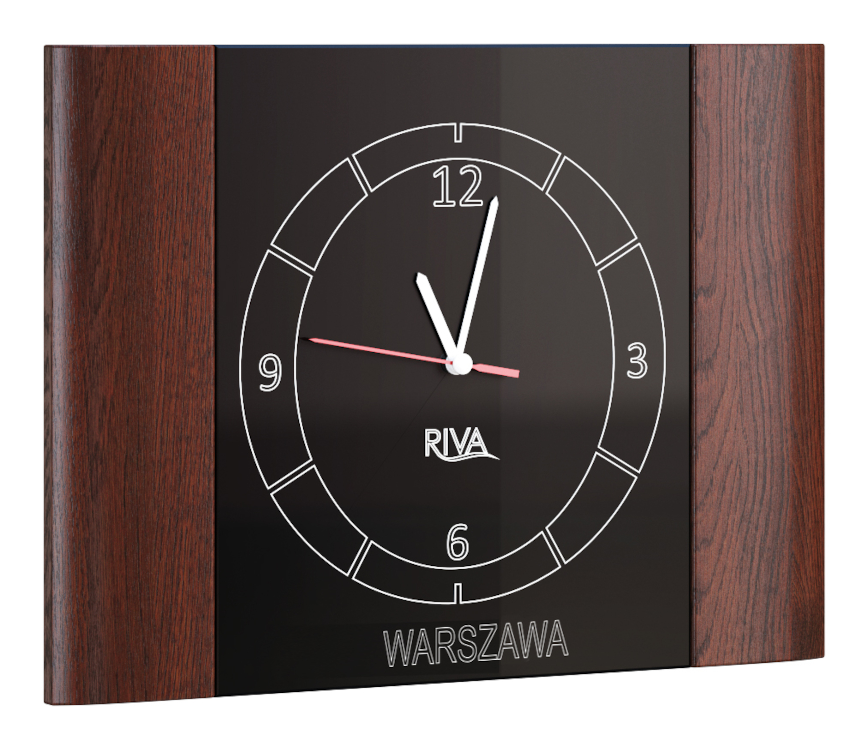 Luxusní hodiny Riva jsou vyrobeny z přírodní dubové dýhy a skla Lacobel. Čtyřvrstvá technologie povrchového moření a lakování dává nábytku jedinečný design s výraznou strukturou lét masivního přírodního dřeva.