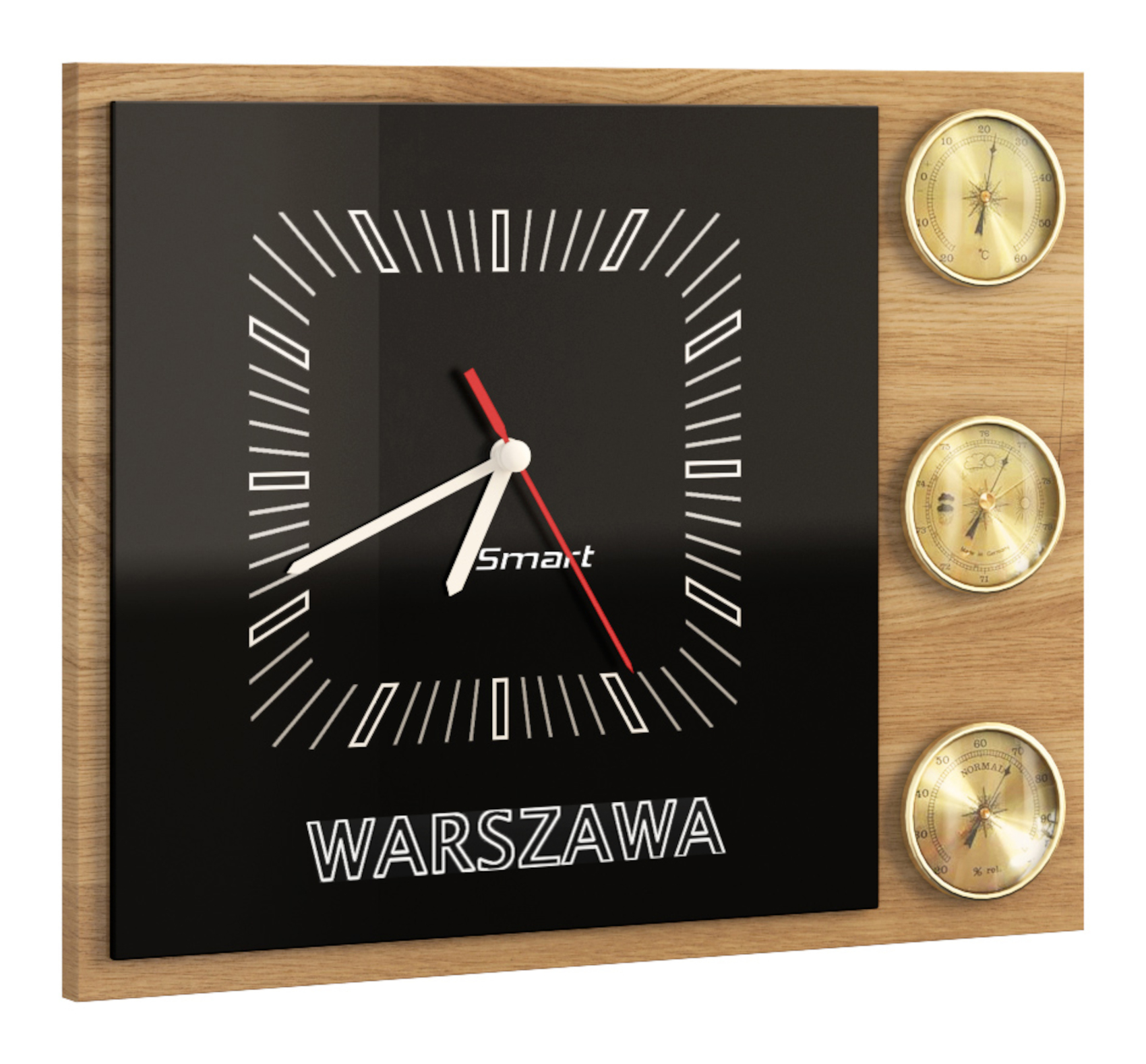Meteorologická stanice Smart je vyrobena z přírodní dubové dýhy a černého skla Lacobel. Kvalitní technologie lakování a moření dodává nábytku přirozený detail dřeva. Můžete si zvolit ze 2 barevných variant.