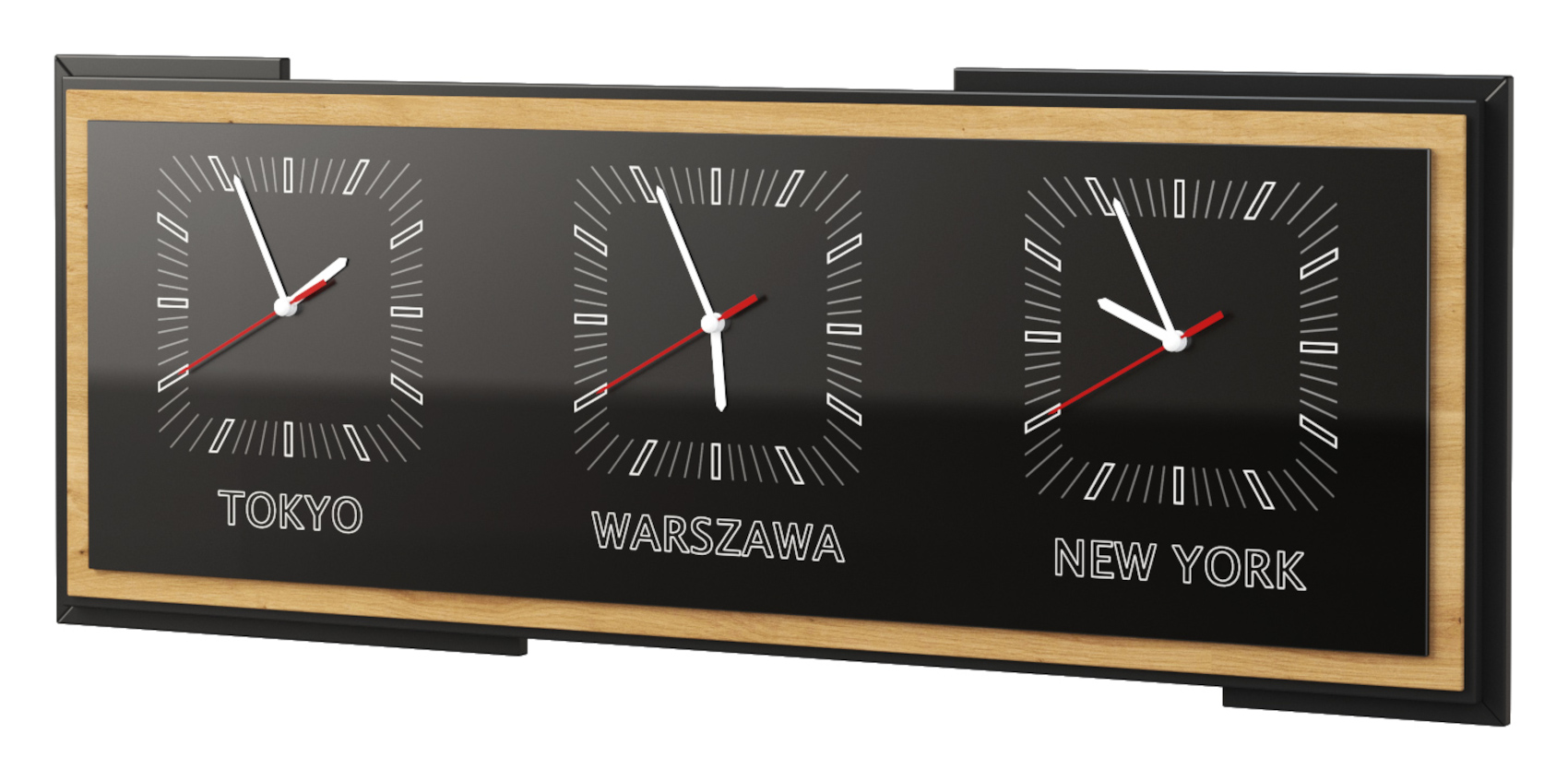 Hodiny mají 3 ciferníky, tudíž můžete sledovat čas až ve 3 světových městech. Nápisy můžete libovolně změnit - váš výběr nám prosím napište do poznámky.