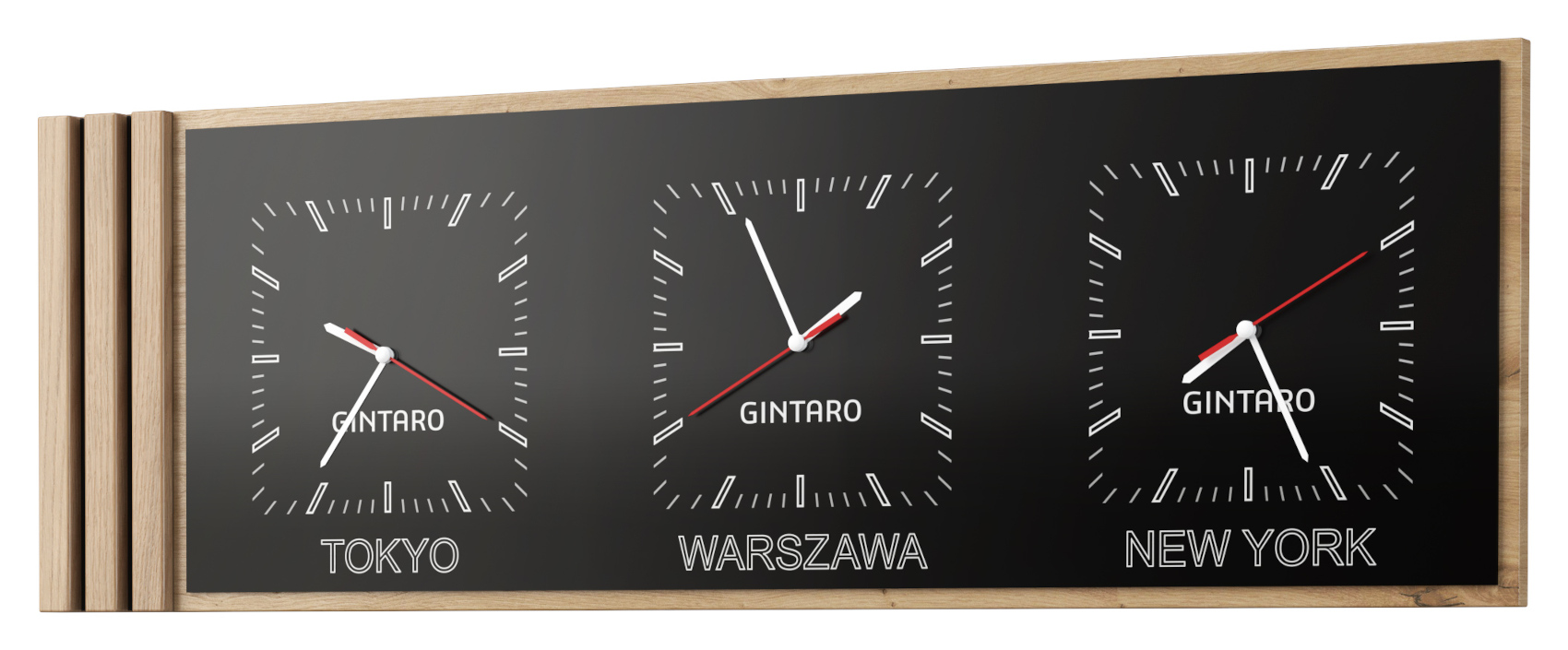 Moderní trojité hodiny Gintaro vás zaujme svým jedinečným designem. Černé lamely na krajní straně dodají nádech elegance. Hodiny jsou vyrobeny z masivního dubového dřeva a přírodní dubové dýhy. Kvalitní technologie lakování a moření navodí přírodní vzhled dřeva a zvýrazní tak jeho léta.