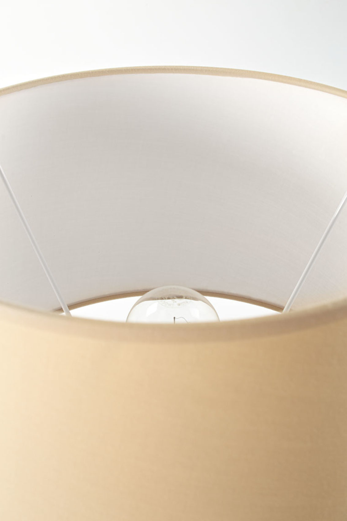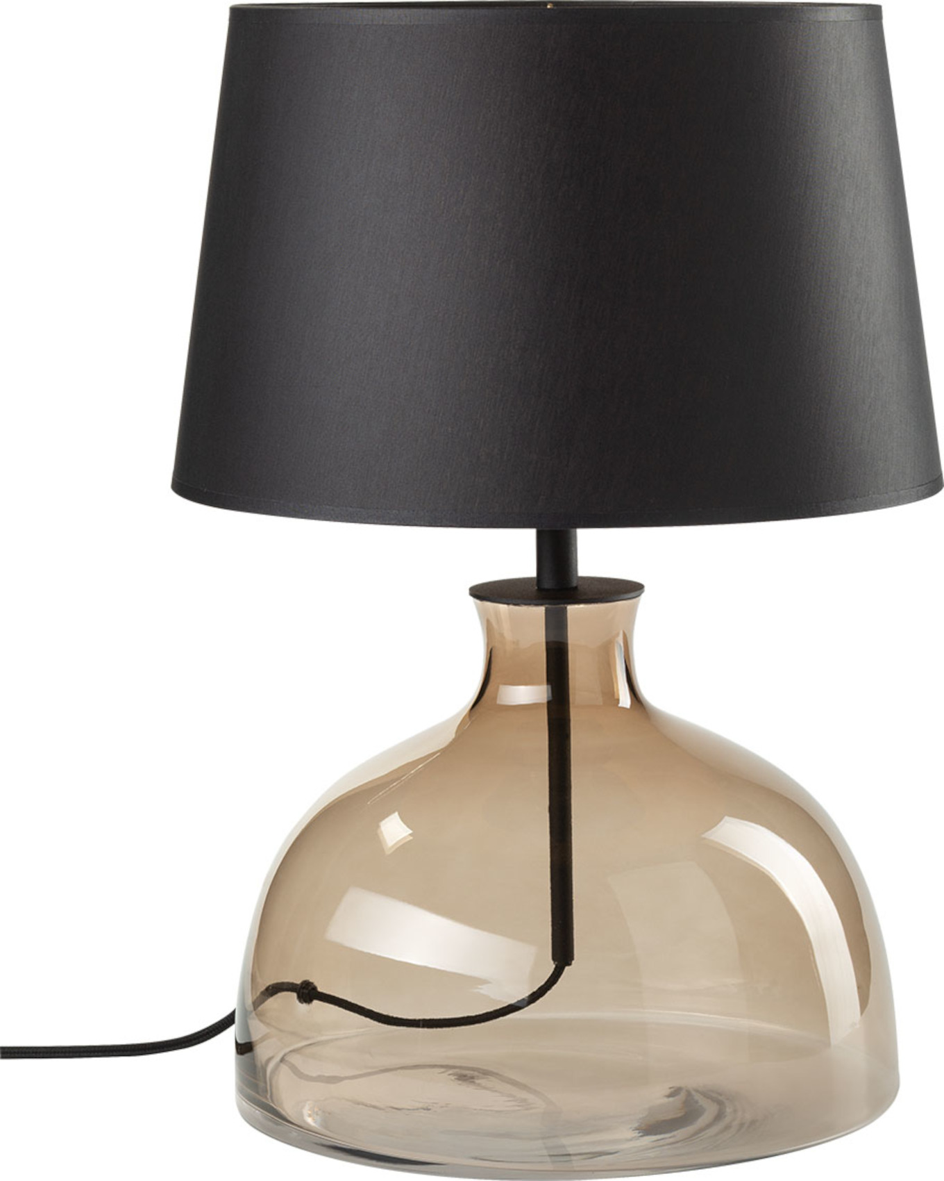 Moderní lampa Haga vás zaujme svým prostým designem s prvky elegance. Je vyrobena z ručně tvarovaného kouřového skla a stínidlo je plastové. Máte možnost si vybrat ze 2 barevných variant stínidel - černá se zlatou nebo taupe.