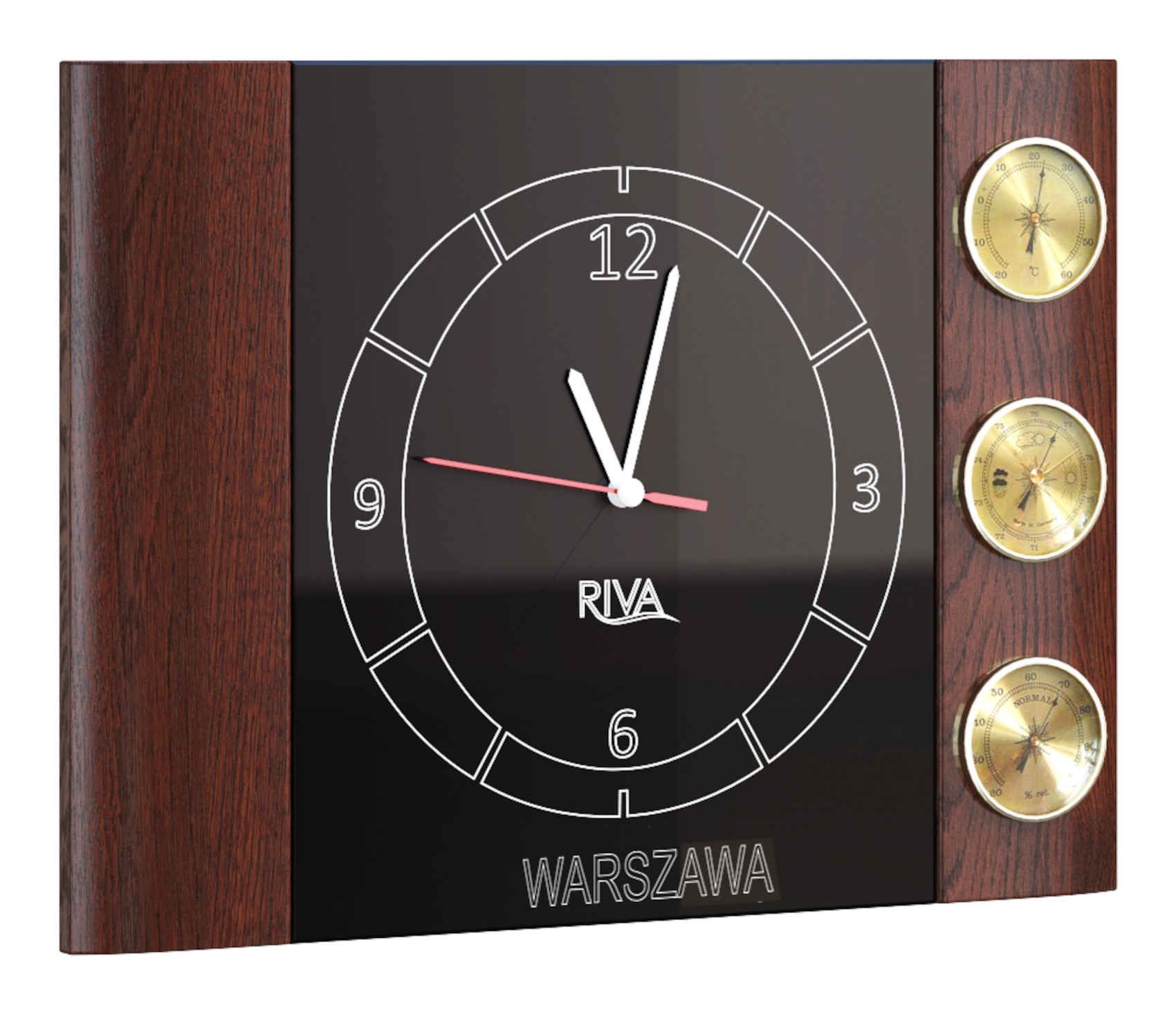 Luxusní meteorologická stanice Riva je vyrobena z přírodní dubové dýhy a skla Lacobel. Čtyřvrstvá technologie povrchového moření a lakování dává nábytku jedinečný design s výraznou strukturou lét masivního přírodního dřeva.