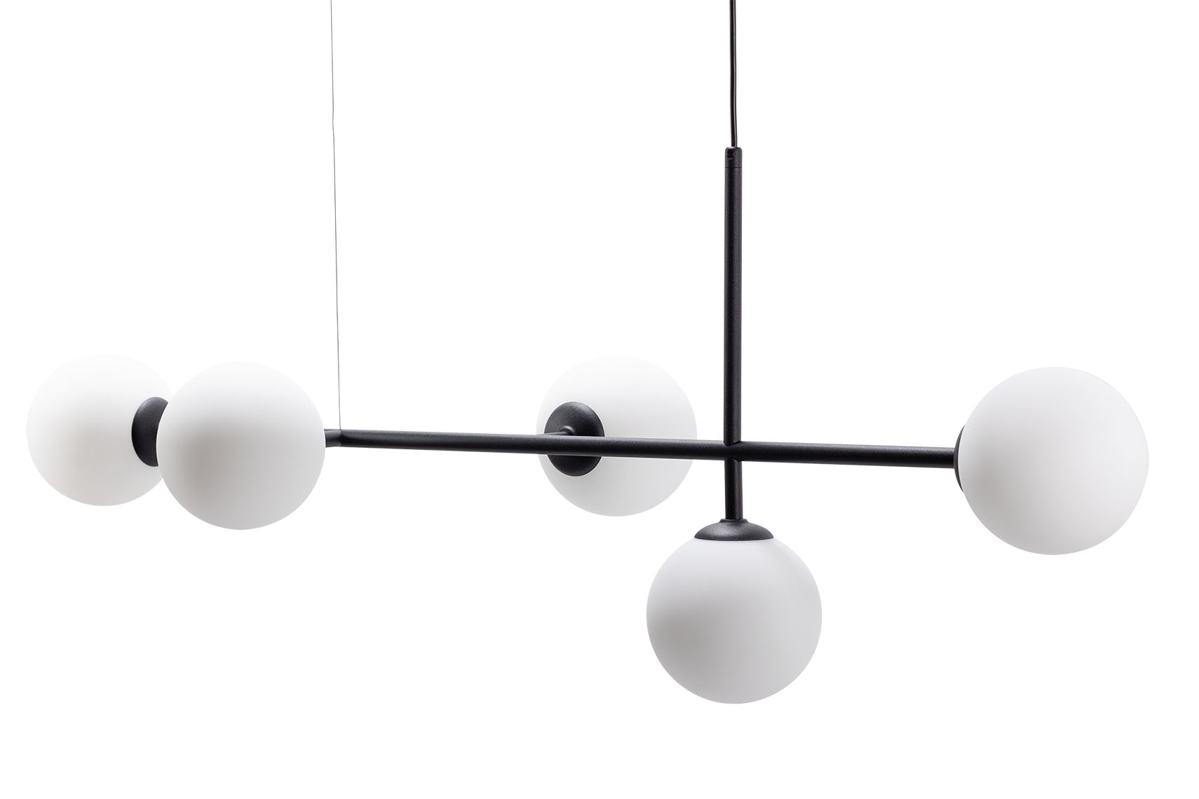 Závěsná lampa Dione s mléčným stínidlem vás zaujme svým jednoduchým a zároveň elegantním černým designem. Je vyrobena z kovu, které vám zaručí kvalitu a odolnost.