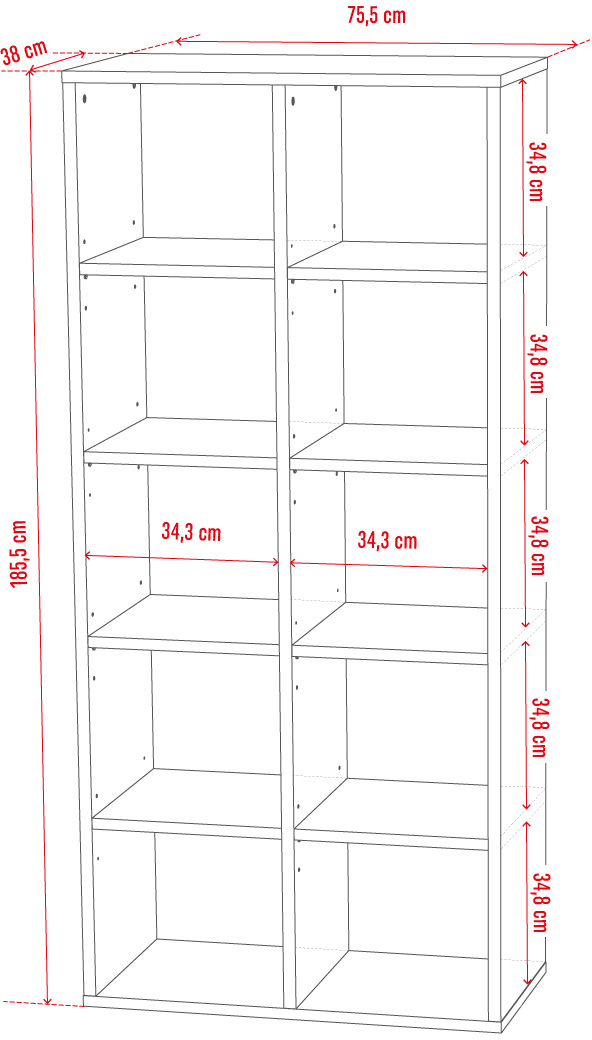Součástí regálu je 8 polic s libovolně nastavitelnou výškou.