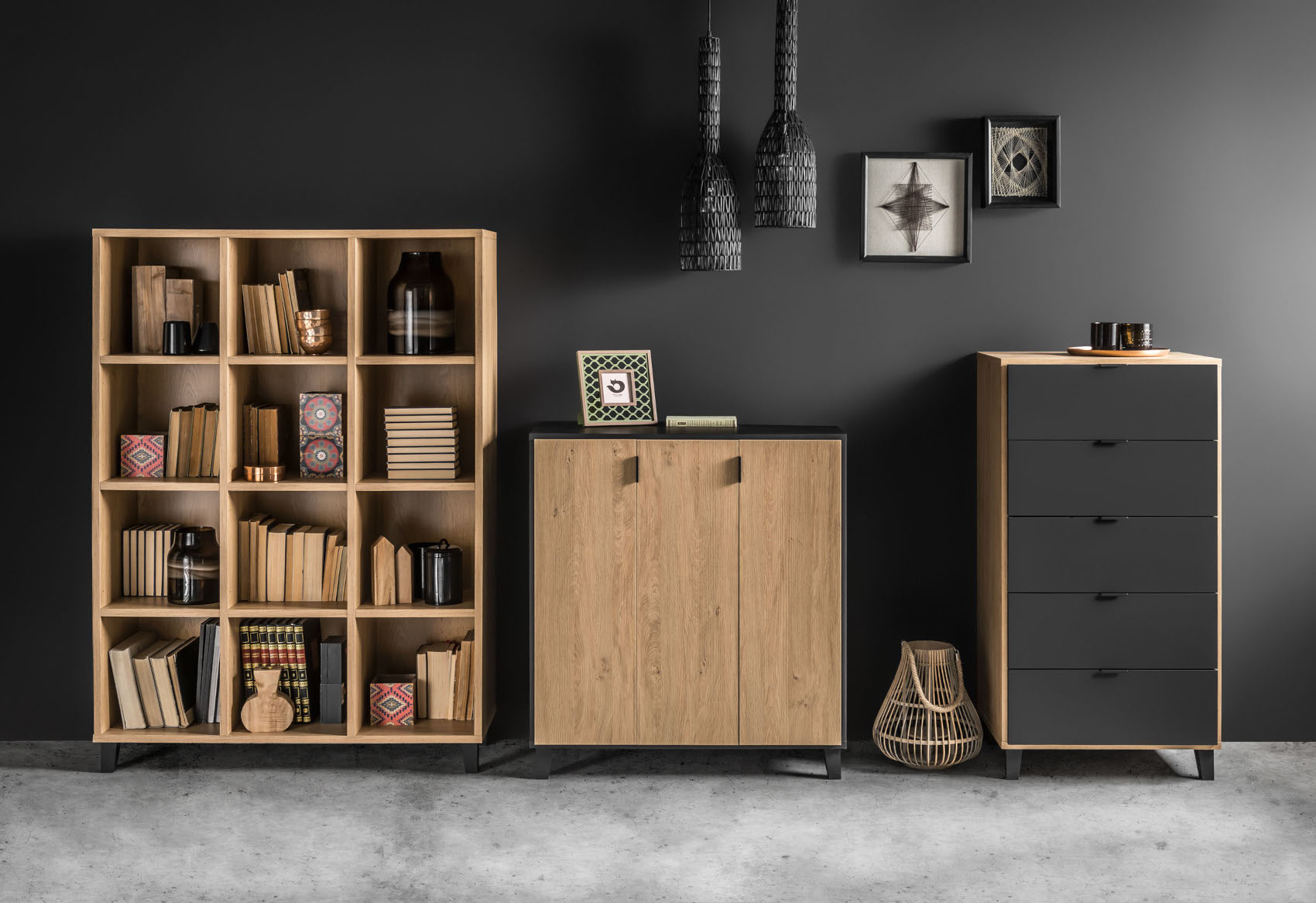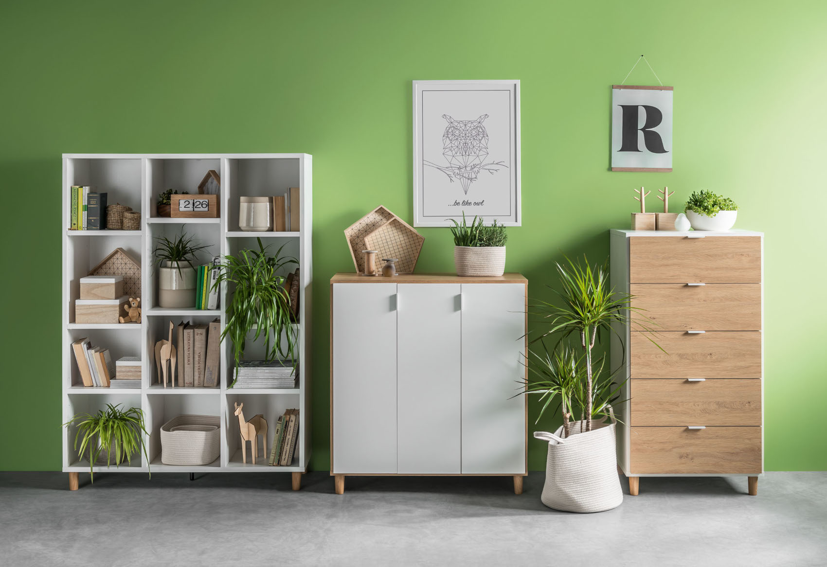 Regál nízký Simple 3x4 vás zaujme svým jednoduchým a zároveň luxusním designem. Tělo je vyrobeno z kvalitního a odolného lamina. Nohy jsou z masivního dubového dřeva, bukového dřeva nebo kovu - je pouze na vás, jaký typ nožek si zvolíte. Nábytek Simple je jedinečný tím, že si sami zvolíte jeho barevné provedení.