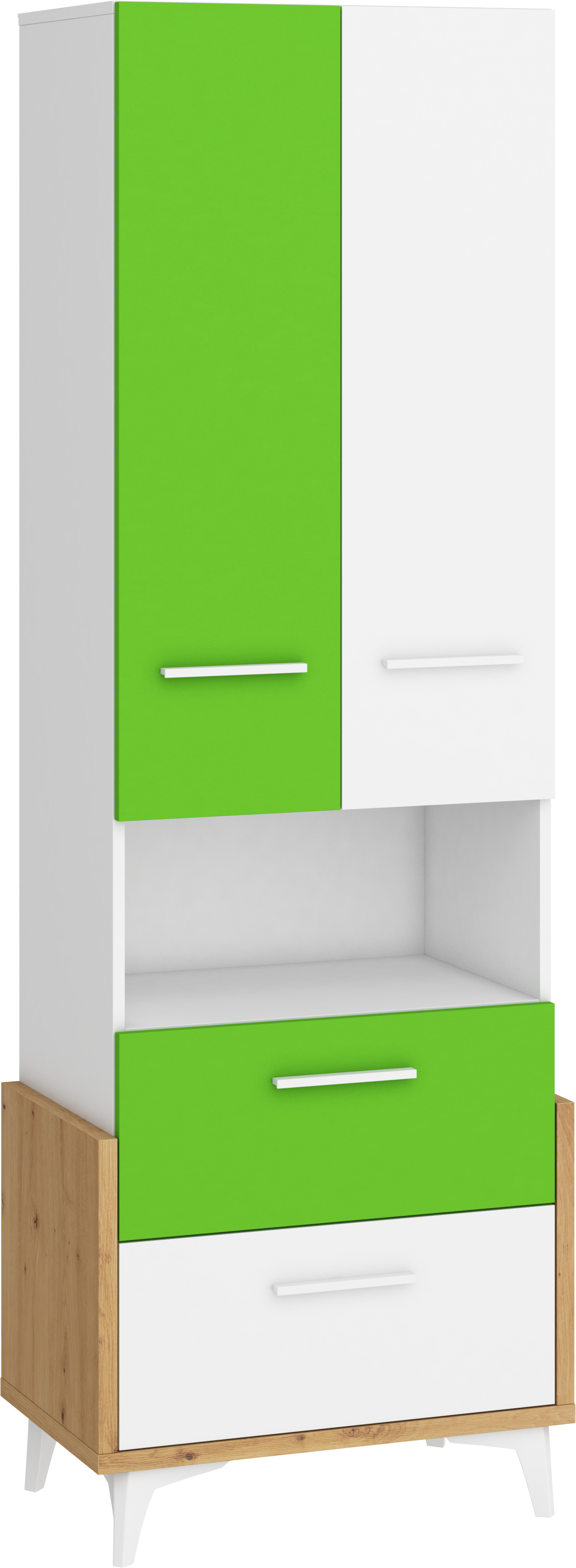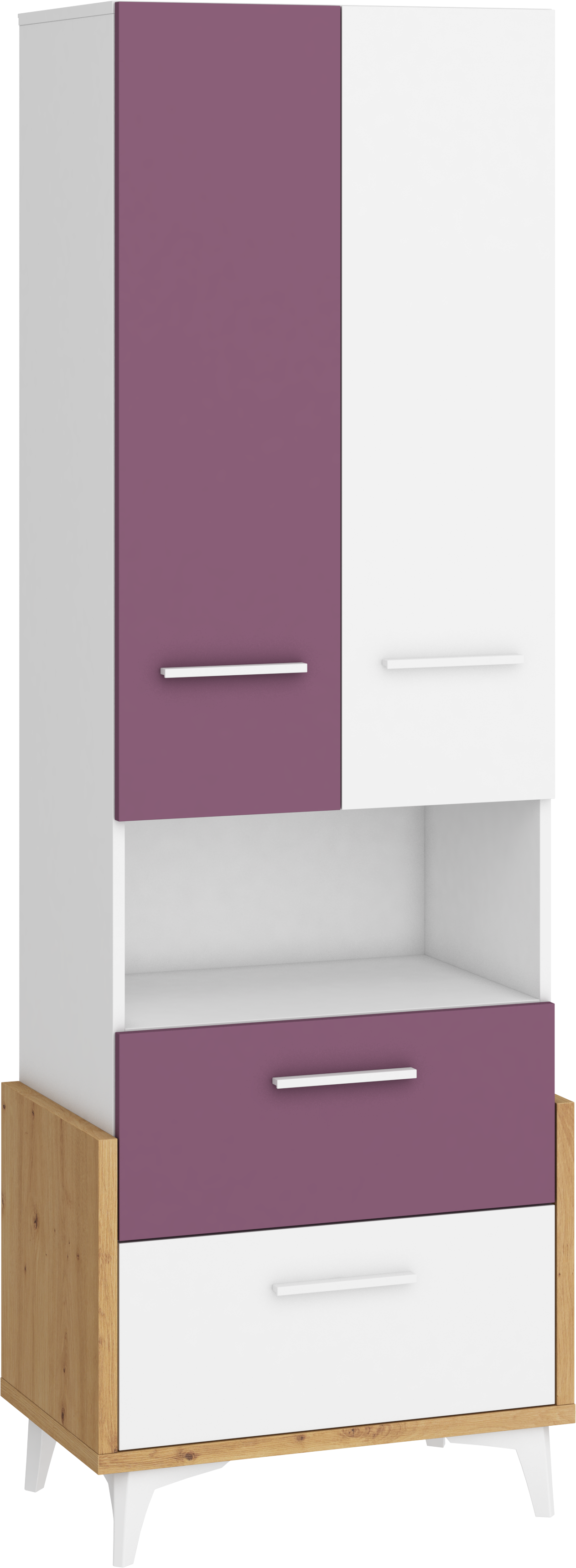 Regál Hey 17 patří ke kolekci nábytku HEY, který je nadčasový a díky svému modernímu designu vhodný do dětských a studentských pokojů. Produkty jsou vyrobené z kvalitního lamina s ABS úpravou hran, čímž je minimalizované riziko mechanického poškození či odštípnutí hrany. Korpusy mají sílu 25 mm, fronty a ostatní části mají sílu 16 mm. Dvířka i zásuvky jsou vybaveny systémem tichého dovírání. Výrazným prvkem systému jsou bílé 12 cm vysoké nožky z tvrzeného plastu, které jistě při úklidu oceníte. Nabízíme vám výběr z několika barevných dekorů.
