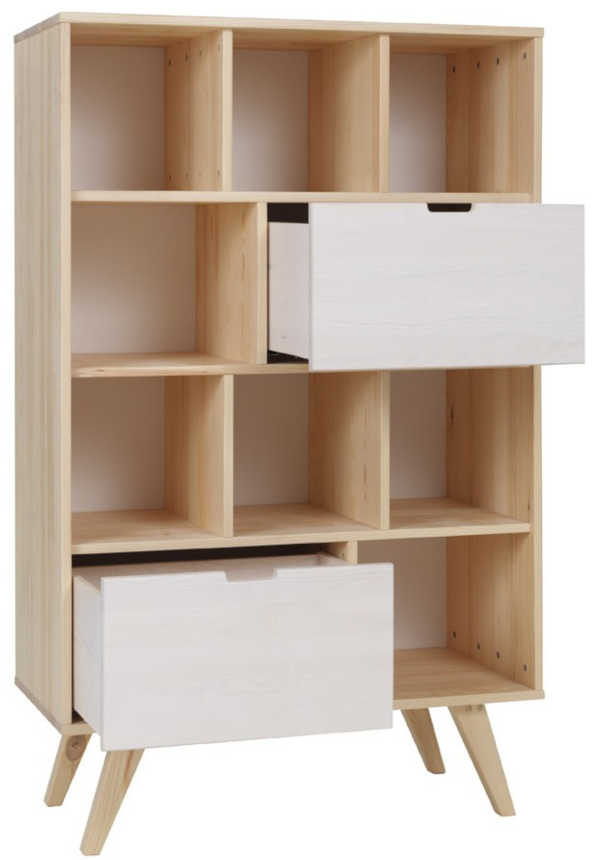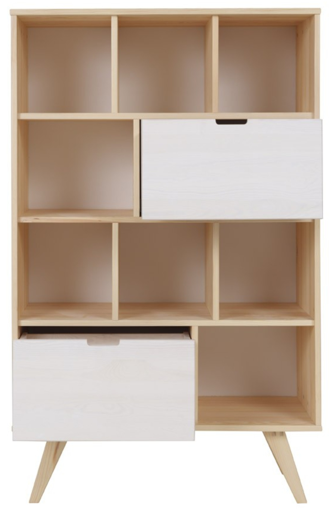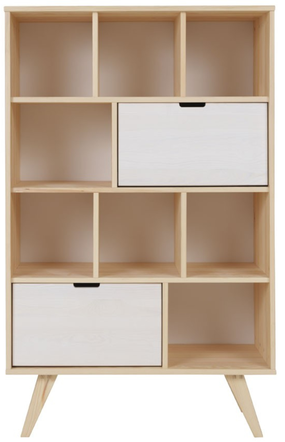 Regál má několik otevřených nik k vystavení oblíbených knih, dekorací nebo rámečků s fotografiemi. Součástí jsou také 2 zásuvky k uložení drobných nezbytností.