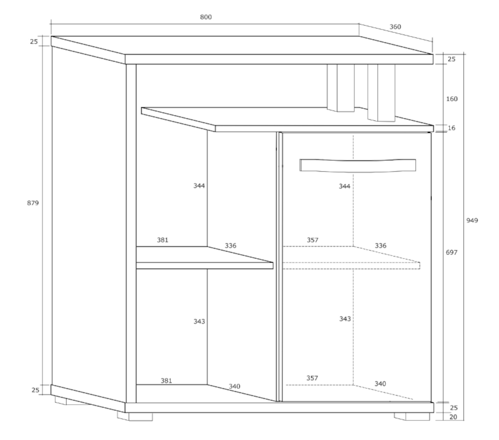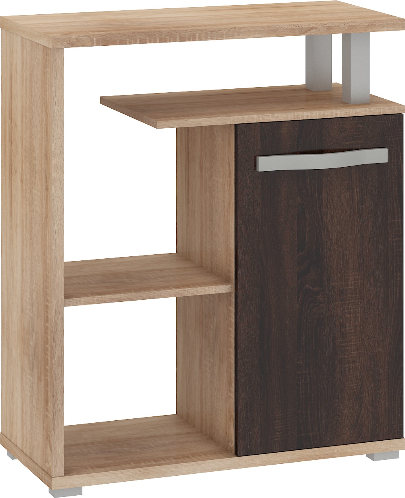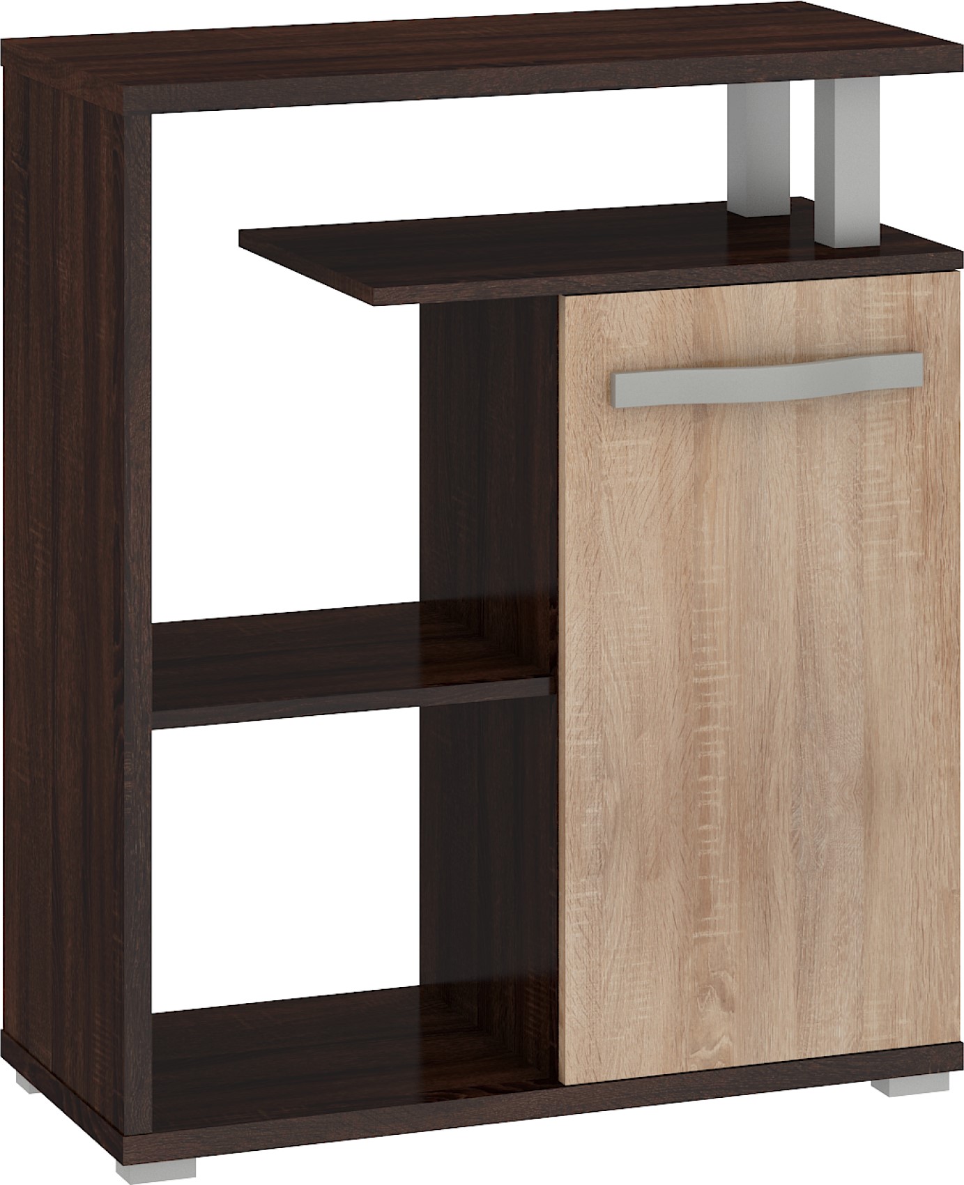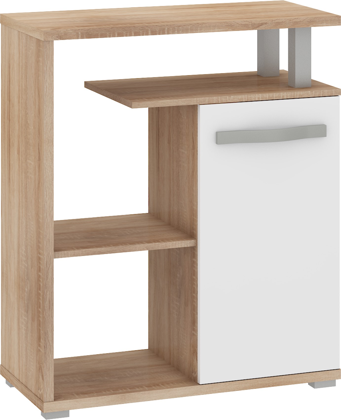 Součástí jsou 1 plná dvířka, za kterými je vložena 1 lakovaná police. Na levé straně jsou otevřené niky k vystavení vašich oblíbených knih, dekorací či rámečků s fotografiemi.