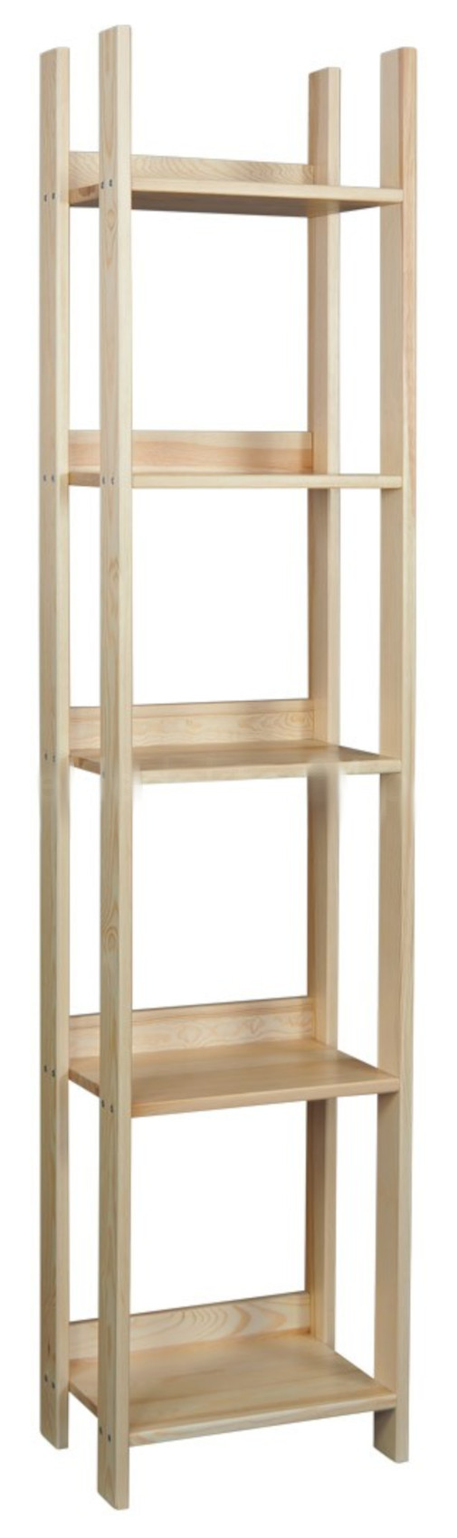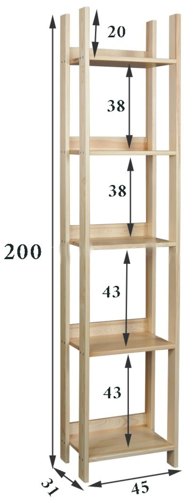 Regál Azur 45 vás zaujme svým jednoduchým přírodním designem s viditelnou strukturou dřevěných lét. Je vyroben z masivního borovicového dřeva, které vám zaručí kvalitu, odolnost a stabilitu. Regál stojí na nízkých nožkách, které dodají nádech elegance a provzdušní váš interiér. Na výběr máte z několika odstínu moření dřeva.