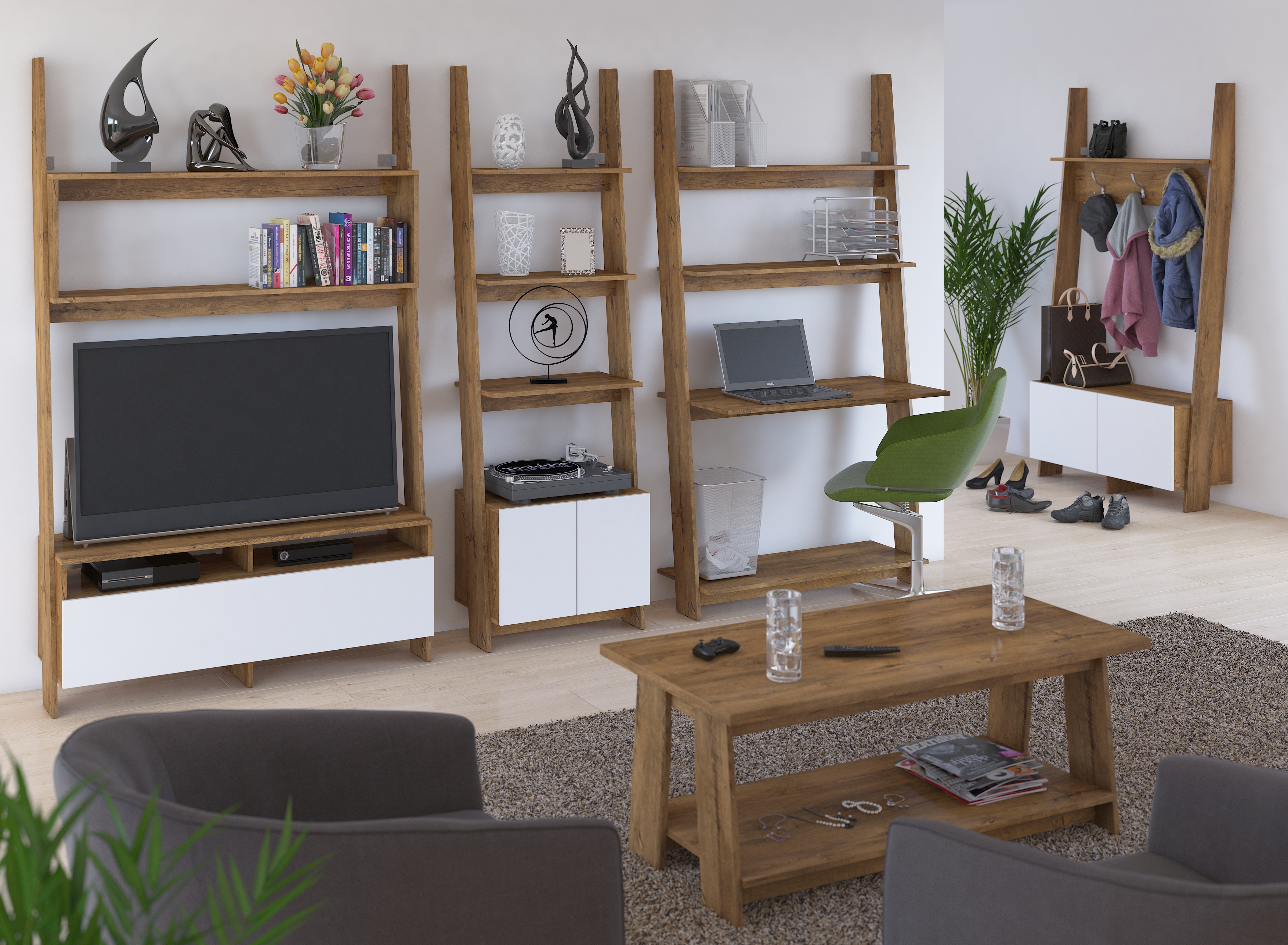 Chcete mít doma netradiční a zároveň zajímavý nábytek, který splňuje designové trendy? Kolekce Rack je vyniká ve všech směrech a je skvělým řešením pro lidi, kteří rádi experimentují a mají rádi vzdušné a otevřené prostory. Produkty kolekce Rack jsou vyrobené z 16 mm a 25 mm silného lamina, které je odolné. Hranění ABS navíc snižuje riziko mechanického poškození vašeho nového nábytku.