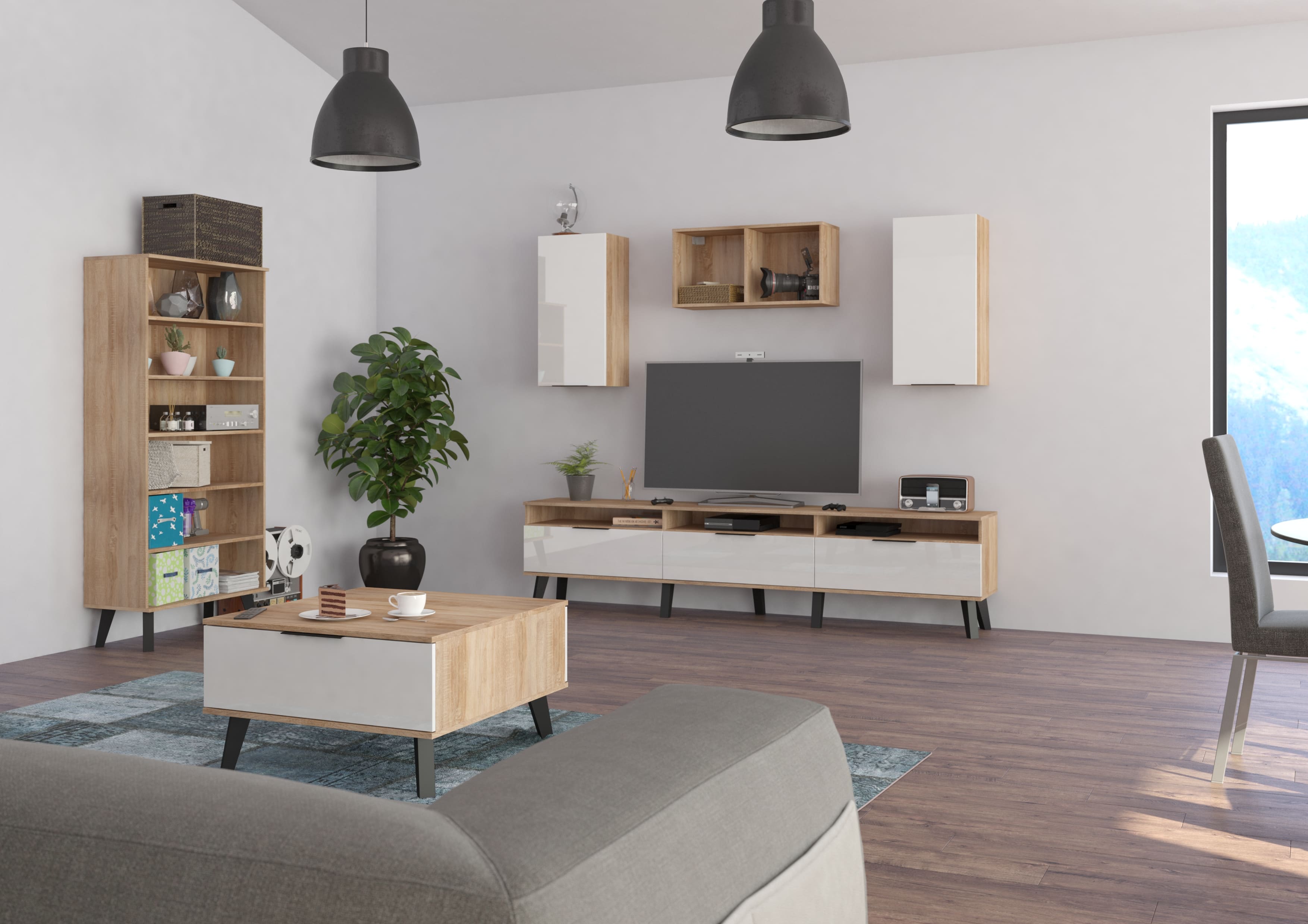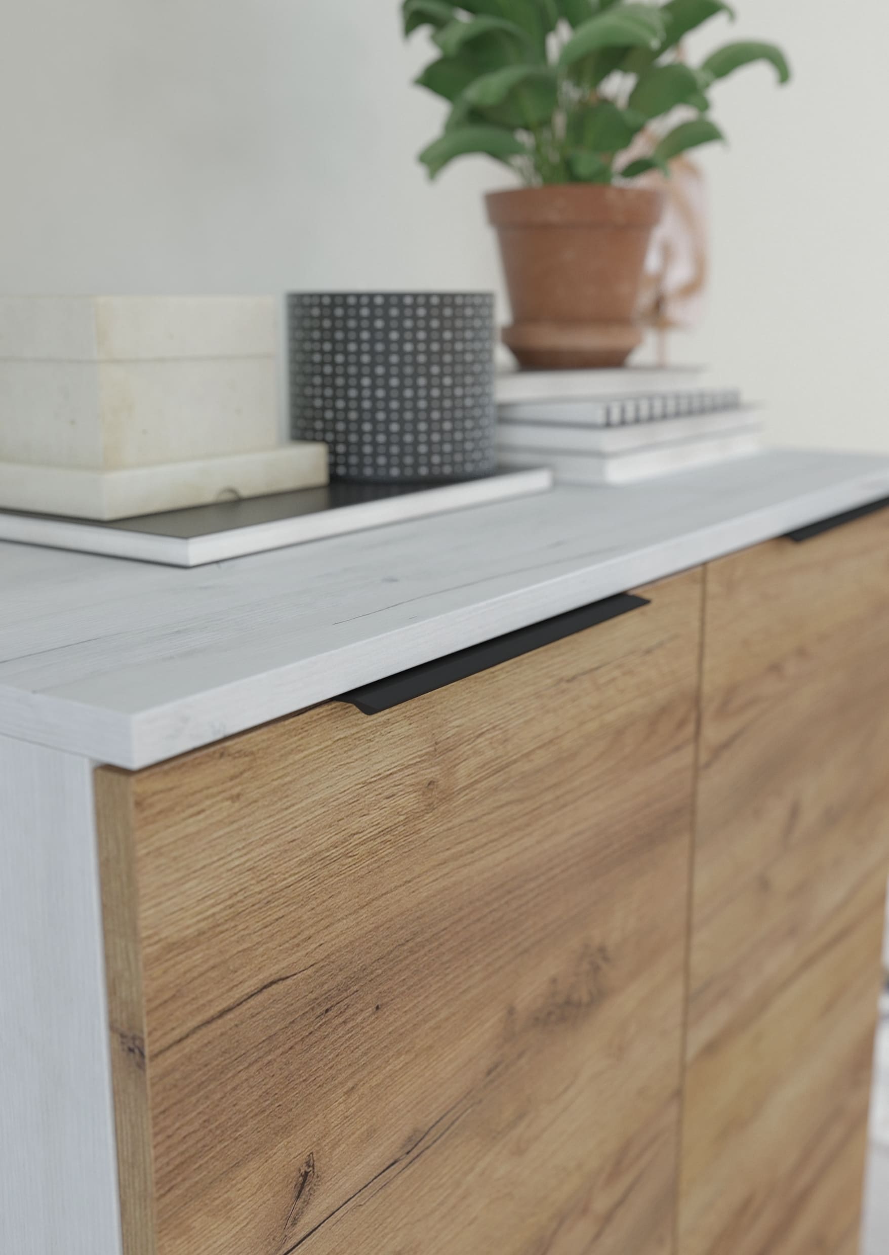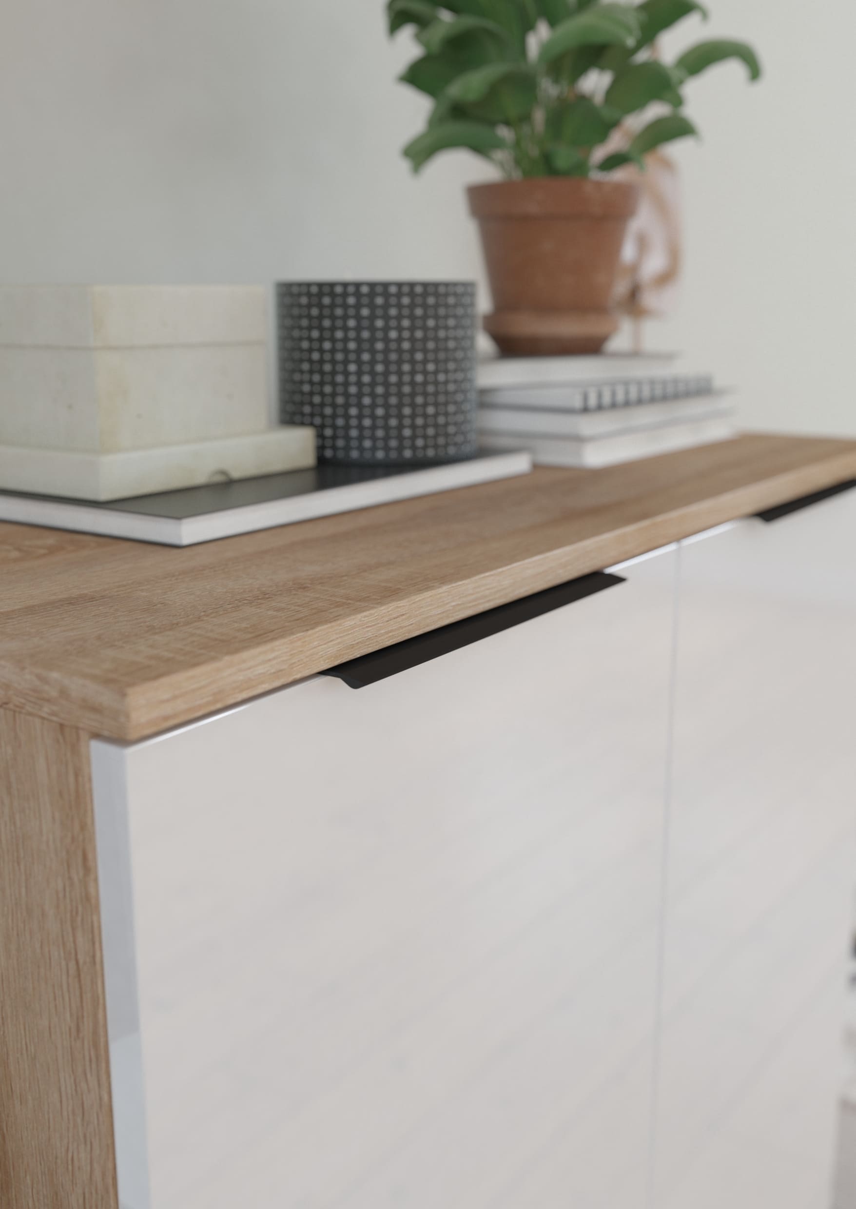 Výrazným prvkem jsou černé 18 cm vysoké dřevěné nožky, které dodají celé kolekci originální vzhled. A nejen to, vysoké nožky jsou také praktické při uklízení. Černou barvu mají i úchyty, jež doplňují barevné kombinace reflektující moderní trendy v bydlení. Vybavte si svůj obývák kolekcí SVEN!