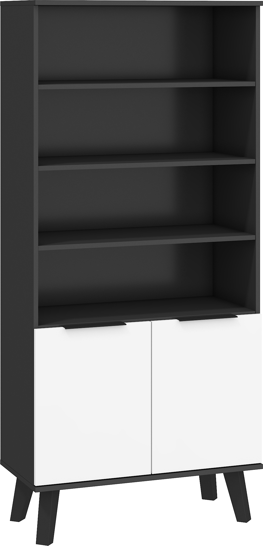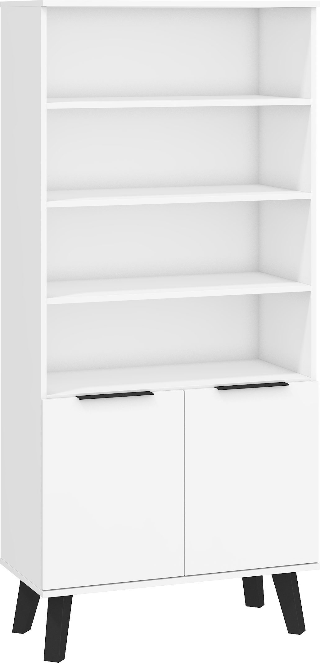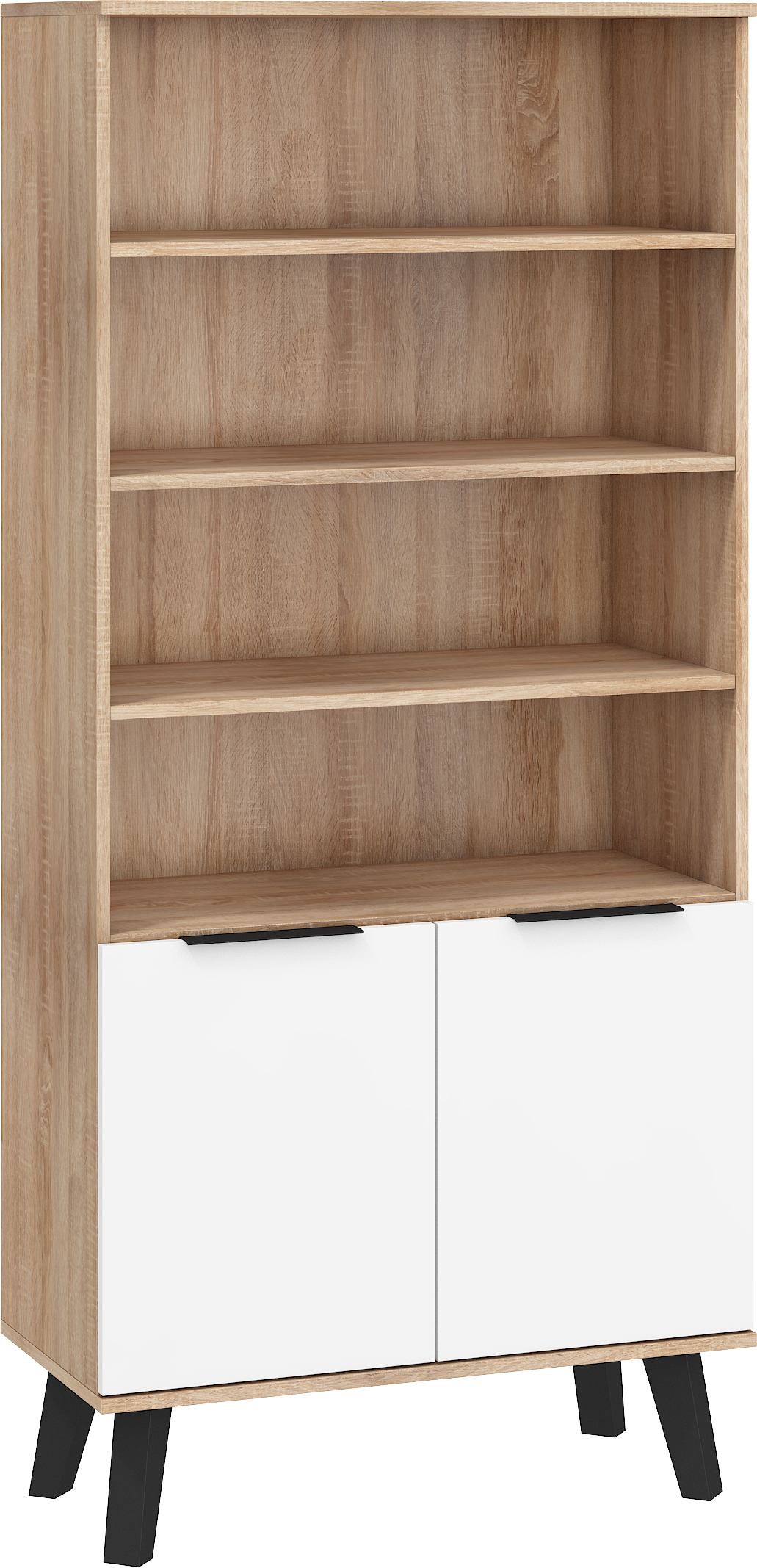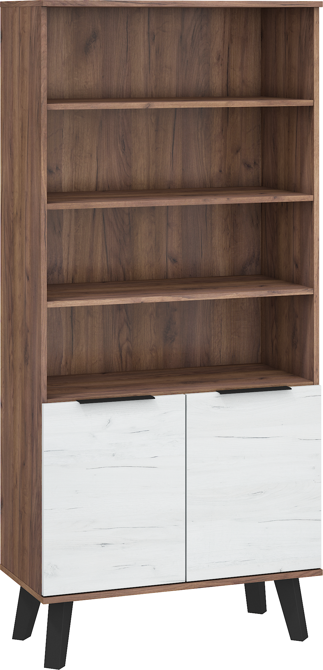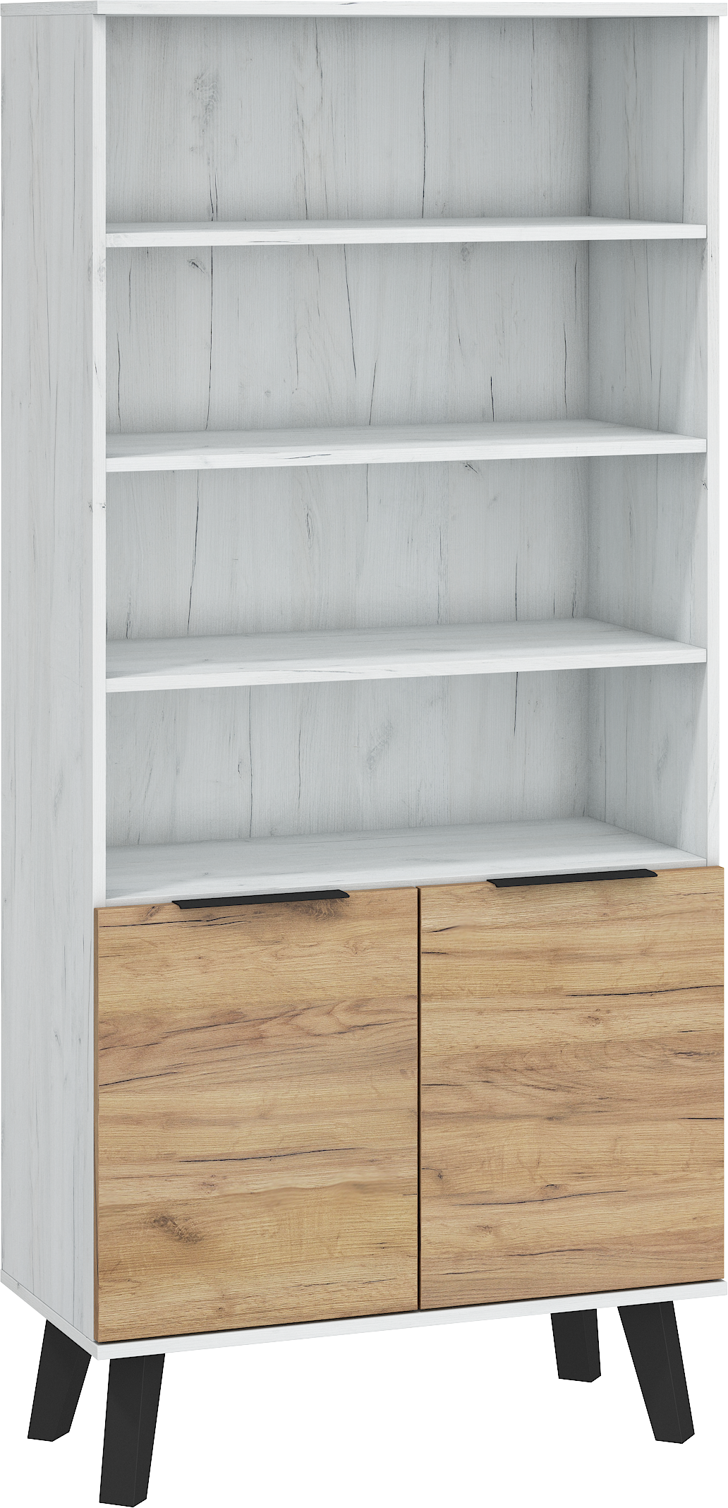 Regál Sven 08 je vybavený 3 policemi a skříňkou s poličkou uvnitř.