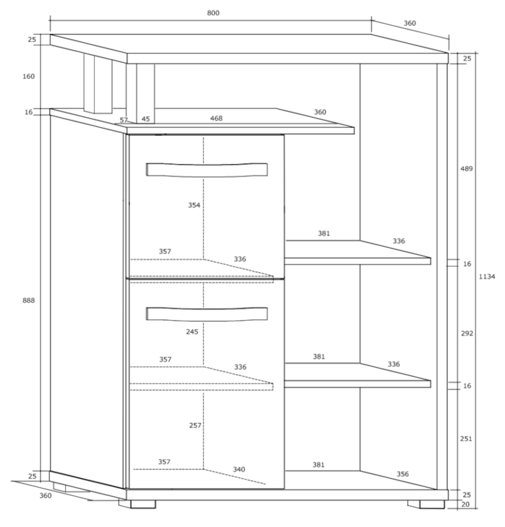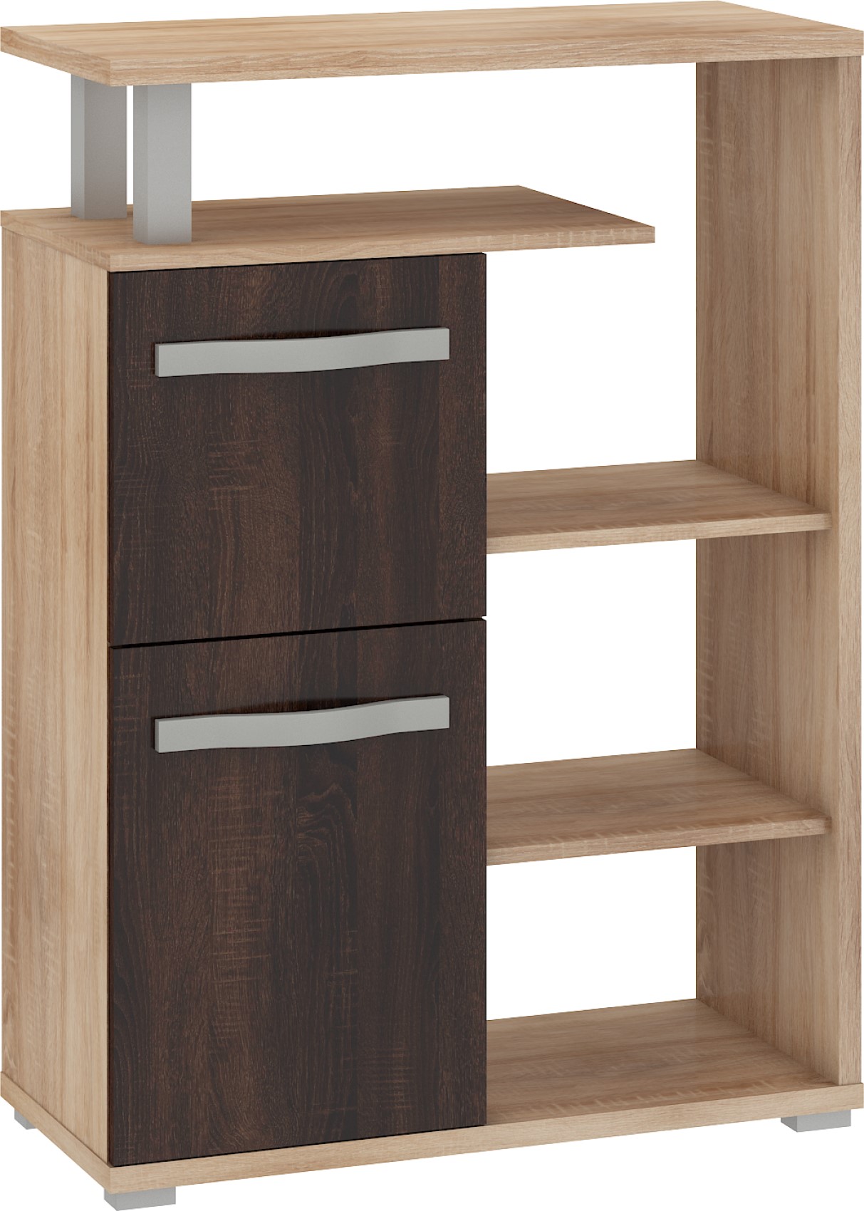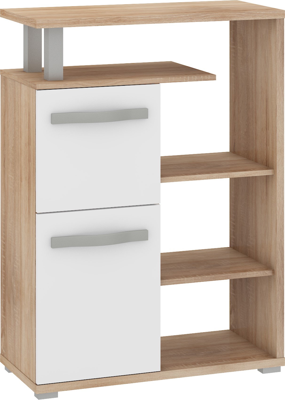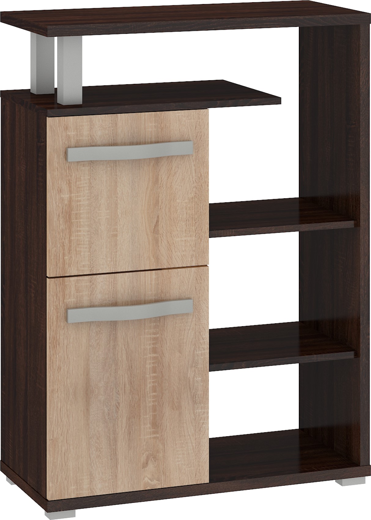 Součástí jsou 2 dvířka, za kterými je vložena 1 lakovaná police. Na pravé straně jsou otevřené niky k vystavení vašich oblíbených knih, dekorací či rámečků s fotografiemi.