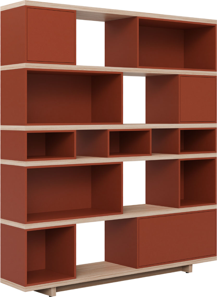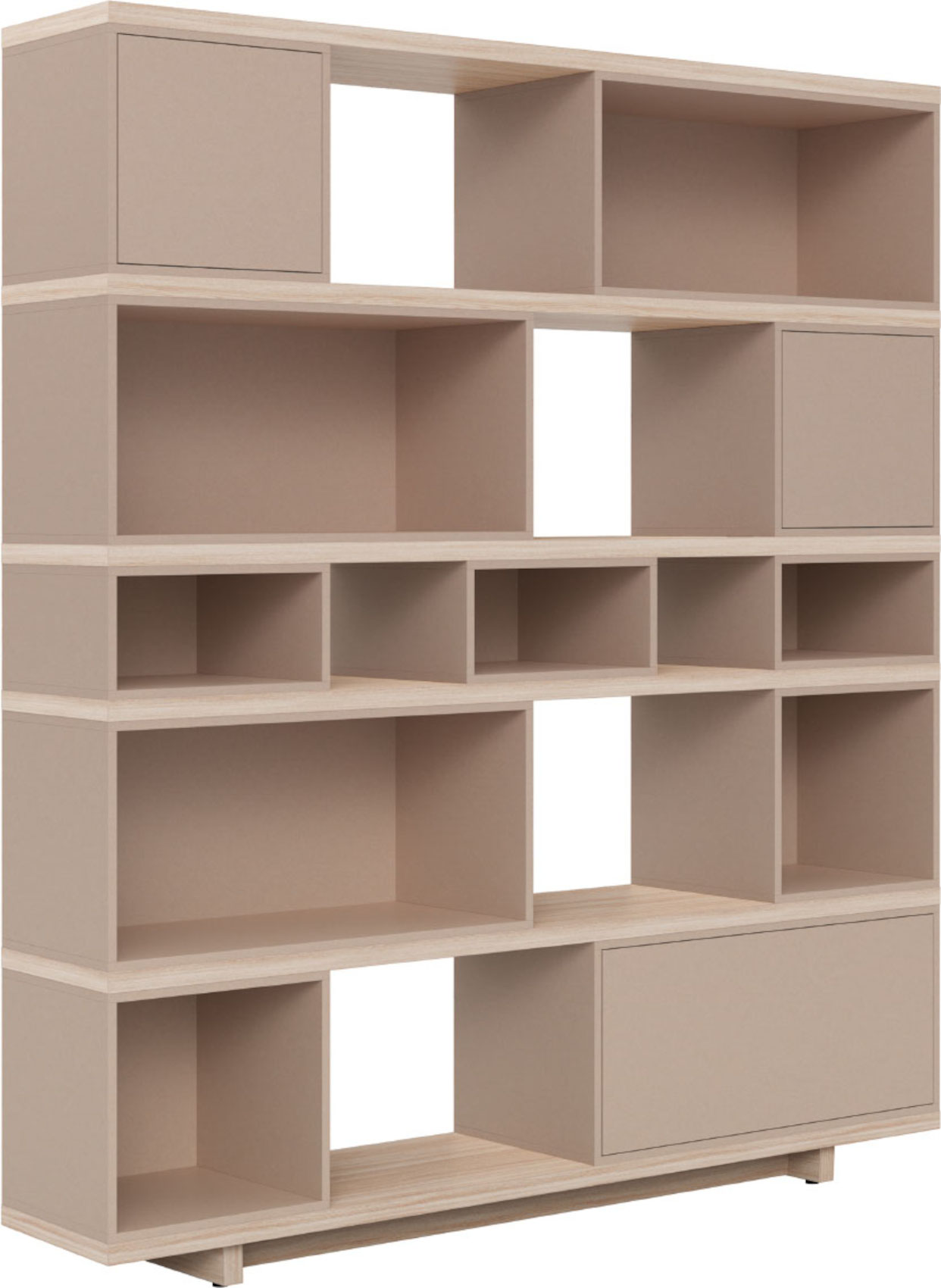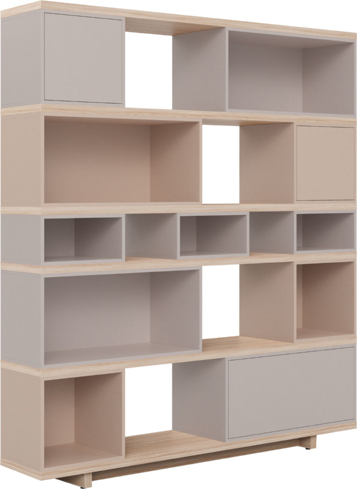 Součástí regálu je několik otevřených nik k vystavení vašich oblíbených knih, dekorací a rámečků s fotografiemi. Mezi nikami jsou vloženy také uzavíratelné skříňky, do kterých si můžete ukládat veškeré nezbytnosti.
