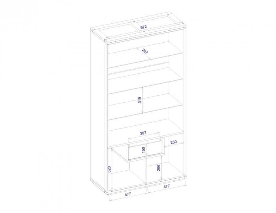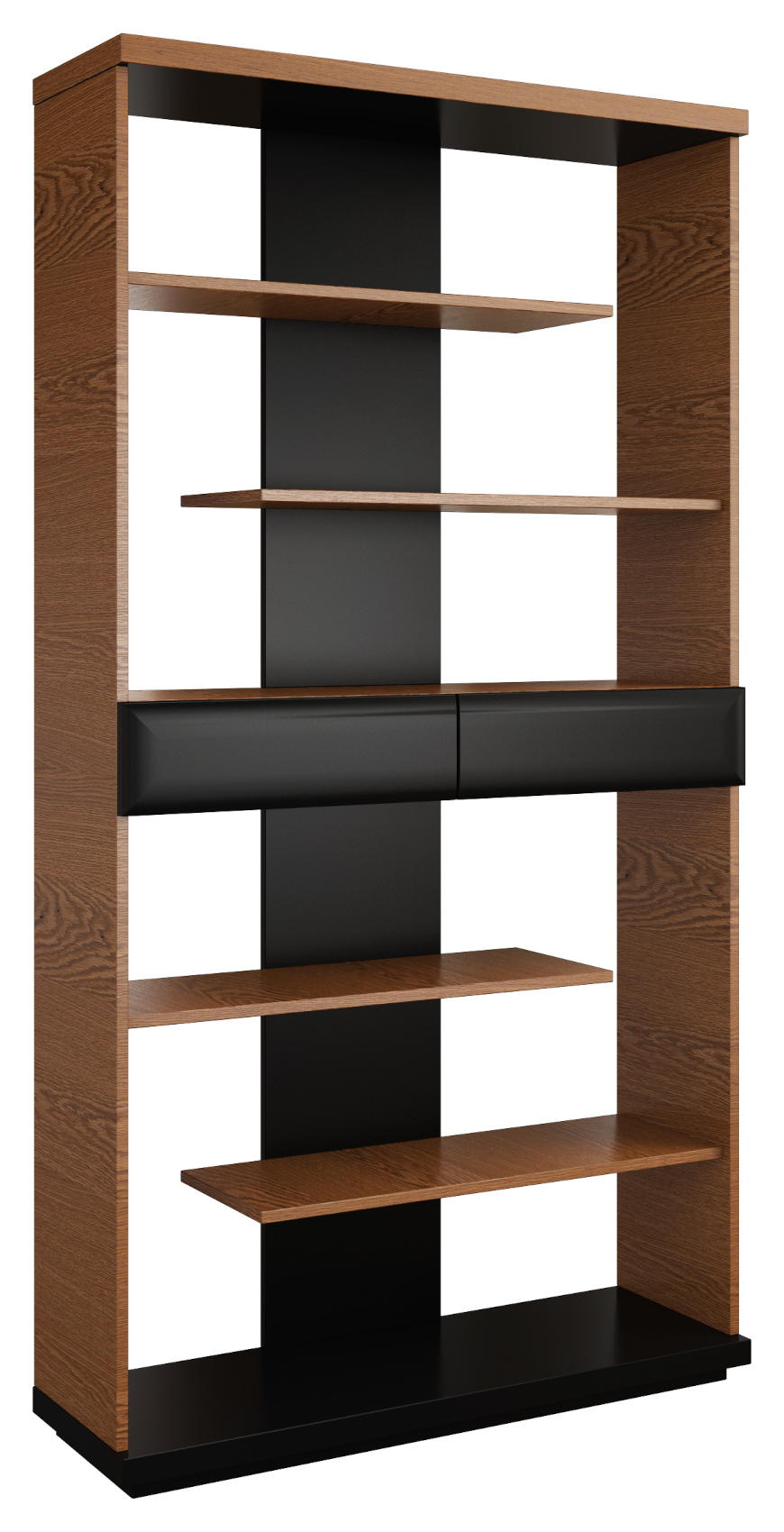 Regál má 4 dřevěné police, na které si můžete vystavit své oblíbené dekorace nebo knihy. Uprostřed jsou 2 černé lakované zásuvky na kovových pojezdech s jednoduchým dotykovým systémem otevírání Push to open.