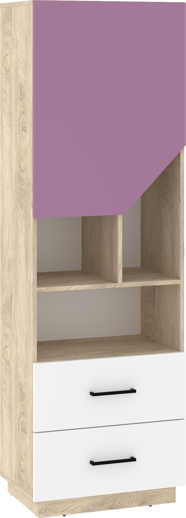 Vysoký regál Pax vás zaujme svým moderním designem a barevným provedením. Je vyroben z kvalitních lamino desek o síle 16 mm. Desky mají ABS hranění, které zvyšuje odolnost pro odštípnutí hran. Součástí zásuvek a dvířek jsou jednoduché černé kovové úchyty, zároveň mají zabudovaný systém tichého dovírání. Nábytek je vybaven soklem, který zvyšuje stabilitu nábytku. Nabízíme vám několik barevných kombinací.