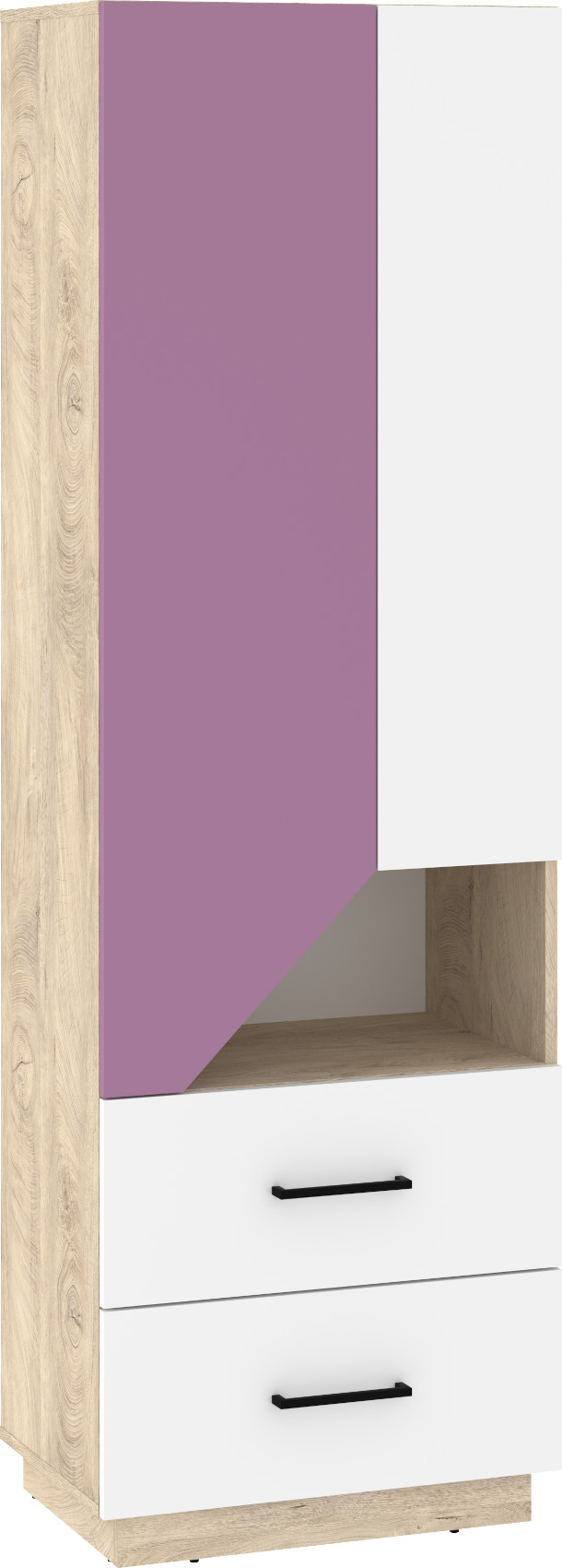 Vysoký regál Pax vás zaujme svým moderním designem a barevným provedením. Je vyroben z kvalitních lamino desek o síle 16 mm. Desky mají ABS hranění, které zvyšuje odolnost pro odštípnutí hran. Součástí zásuvek a dvířek jsou jednoduché černé kovové úchyty, zároveň mají zabudovaný systém tichého dovírání. Nábytek je vybaven soklem, který zvyšuje stabilitu nábytku. Nabízíme vám několik barevných kombinací.