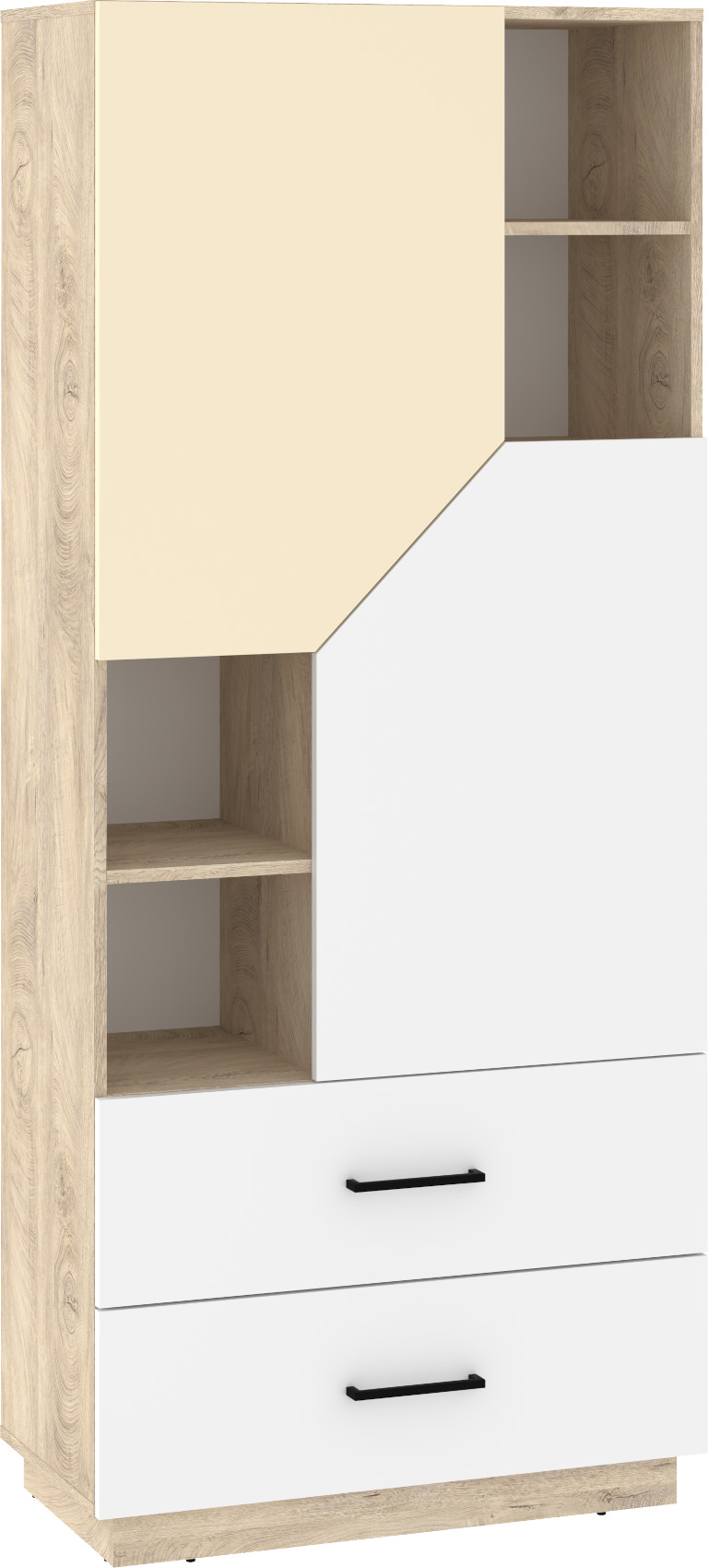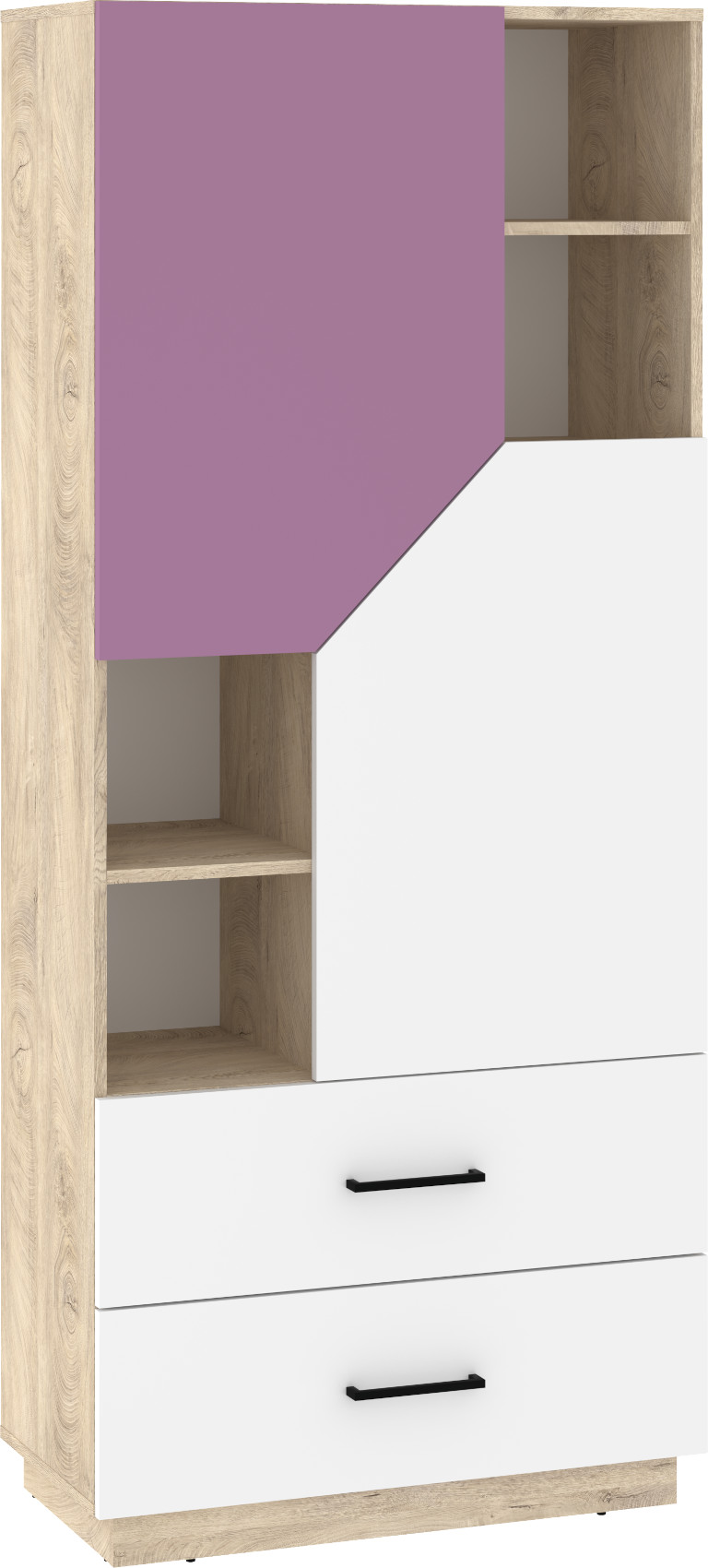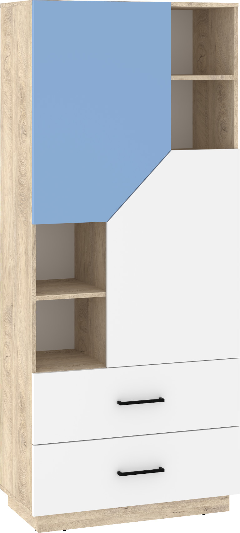 Vysoký regál Pax vás zaujme svým moderním designem a barevným provedením. Je vyroben z kvalitních lamino desek o síle 16 mm. Desky mají ABS hranění, které zvyšuje odolnost pro odštípnutí hran. Součástí zásuvek a dvířek jsou jednoduché černé kovové úchyty, zároveň mají zabudovaný systém tichého dovírání. Nábytek je vybaven soklem, který zvyšuje stabilitu nábytku. Nabízíme vám několik barevných kombinací.