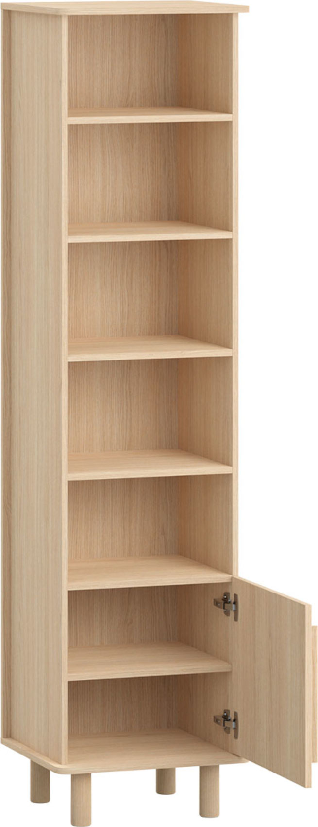 Regál Omm vás zaujme svým jednoduchým klasickým designem v přírodních odstínech. Je vyroben z kvalitního udržitelného lamina odolného vůči poškození. Úchytky a nohy jsou z masivního dubového dřeva. Dvířka mají systém tichého dovírání. Máte možnost si vybrat ze 2 variant - bez nožek nebo s nožkami, které provzdušní váš interiér a zvýší regál o téměř 14 cm.