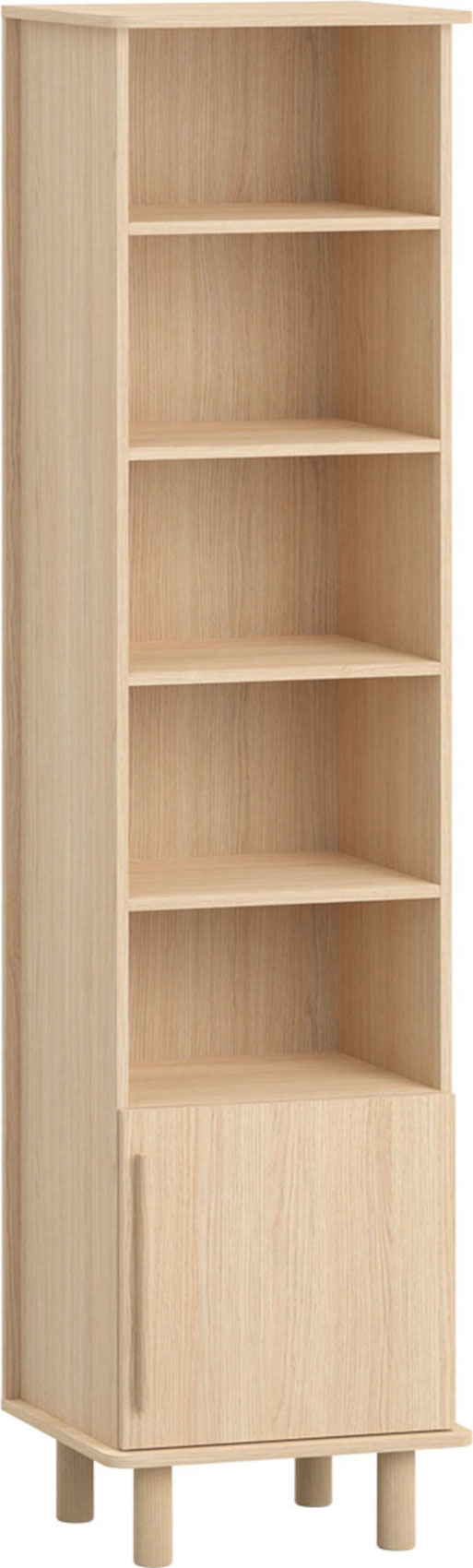 Součástí regálu jsou 4 libovolně nastavitelné police k vystavení vašich oblíbených knih, dekorací či rámečků s fotografiemi. Ve spodní části jsou 1 dvířka, která můžete namontovat na levou nebo pravou stranu. Za dvířky je vložena další police.