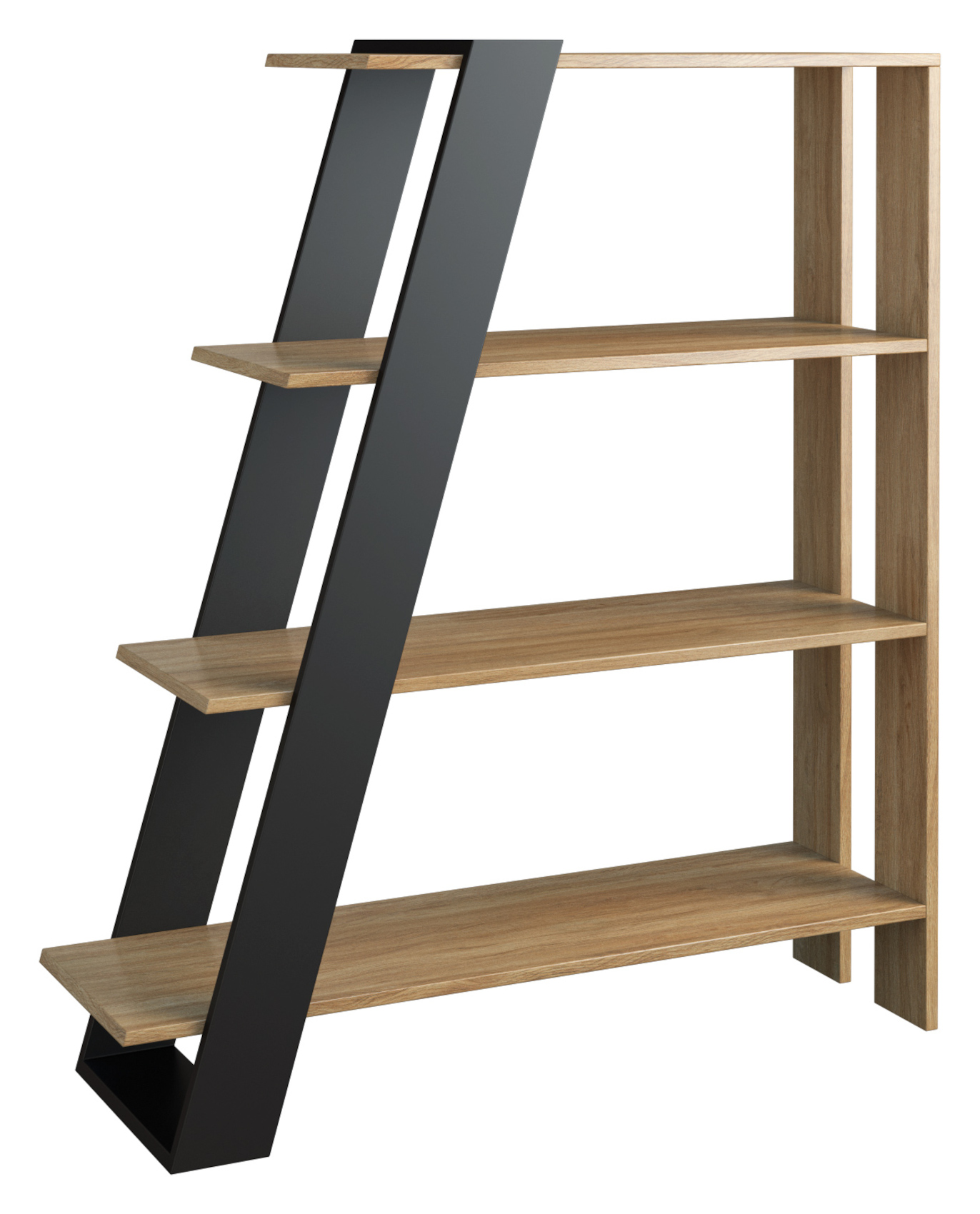 Regál Pik I vás zaujme svým moderním a jednoduchým designem. Je vyroben z přírodní dubové dýhy. Kvalitní technologie lakování a moření dodává nábytku přirozený vzhled dřeva a zvýrazňuje strukturu lét. Jeho atypickými prvky jsou kovové práškově lakované tyče.