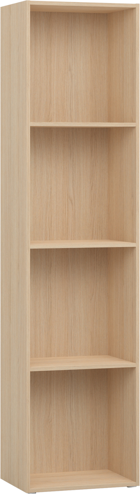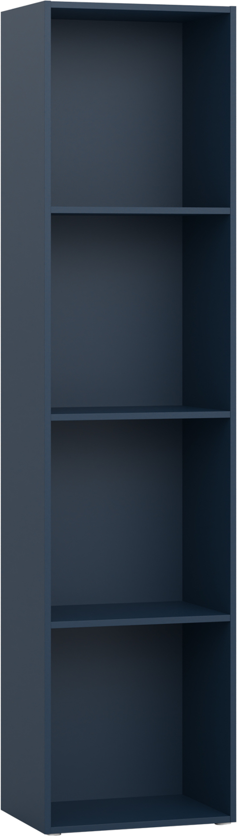 Úzký regál Reli vás zaujme svým jednoduchým klasickým designem. Je vyroben z kvalitního lamina o síle 16 mm, která vám zaručí odolnost vůči poškození. zadní stěny jsou z dřevovláknité desky. Můžete si vybrat ze 3 barevných variant - dub, indigo, šedá.