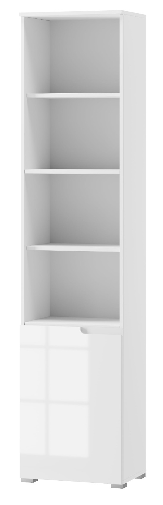 Moderní regál Selene 12 vysoký vás zaujme svým luxusním designem. Je vyroben z MDF dřevotřísky s tenkou vrstvou masivního dřeva v kombinaci s kvalitním laminem potaženého bílou fólií. Přední část je v lesku a korpus je matný. Regál stojí na nízkých plastových nožkách ve stříbrném odstínu.