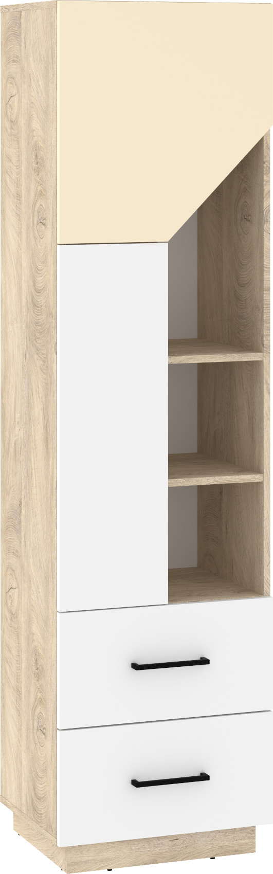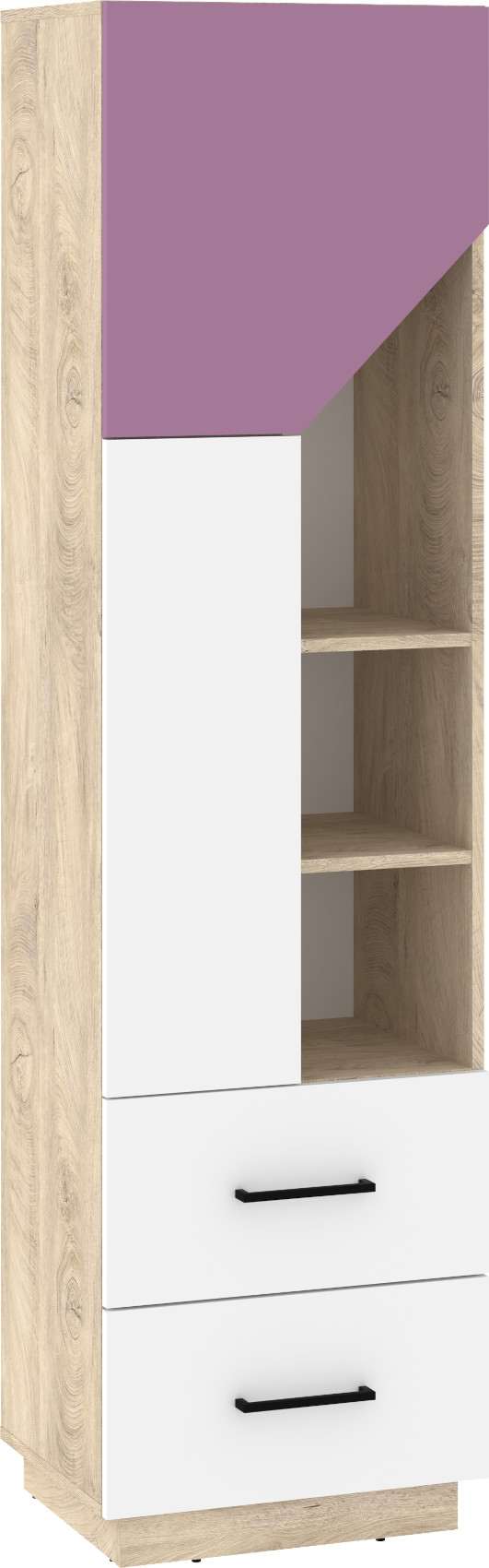 Vysoký regál Pax vás zaujme svým moderním designem a barevným provedením. Je vyroben z kvalitních lamino desek o síle 16 mm. Desky mají ABS hranění, které zvyšuje odolnost pro odštípnutí hran. Součástí zásuvek a dvířek jsou jednoduché černé kovové úchyty, zároveň mají zabudovaný systém tichého dovírání. Nábytek je vybaven soklem, který zvyšuje stabilitu nábytku. Nabízíme vám několik barevných kombinací.
