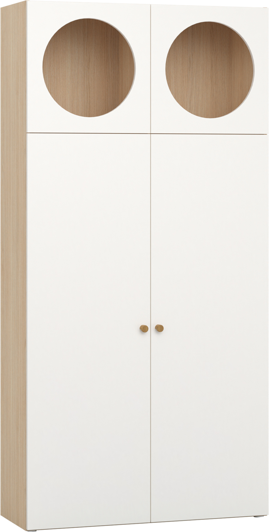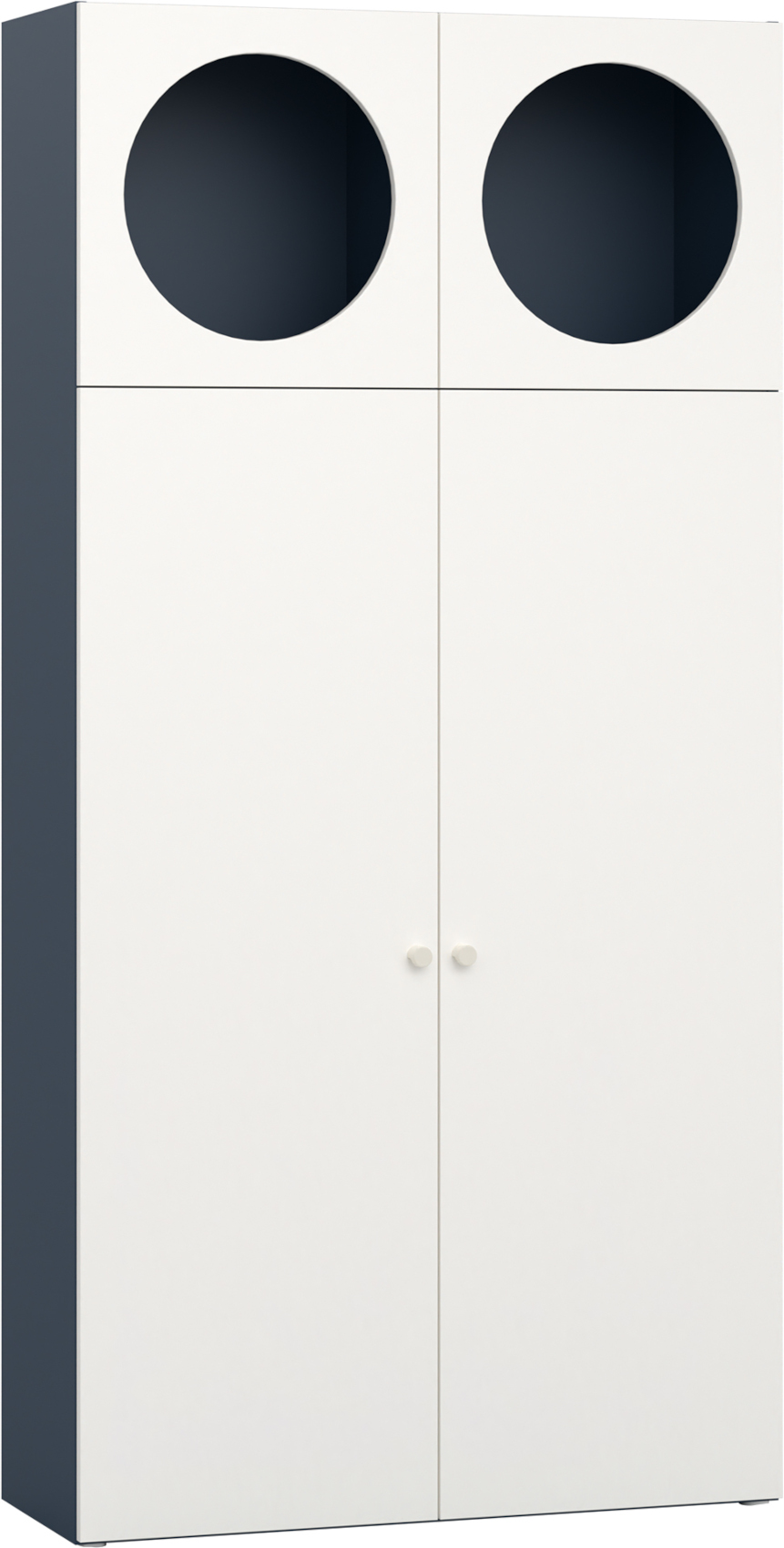 Široký regál Reli 4 vás zaujme svým jednoduchým designem s moderními prvky v alabastrově bílém odstínu v kombinaci s barvou dle vašeho výběru. Je vyroben z kvalitního lamina o síle 16 mm, která vám zaručí odolnost vůči poškození. Úchyty jsou z přírodního bukového dřeva. Můžete si vybrat ze 3 odstínů - dub, indigo nebo šedá. Dvířka mají zabudovaný systém tichého dovíraní.
