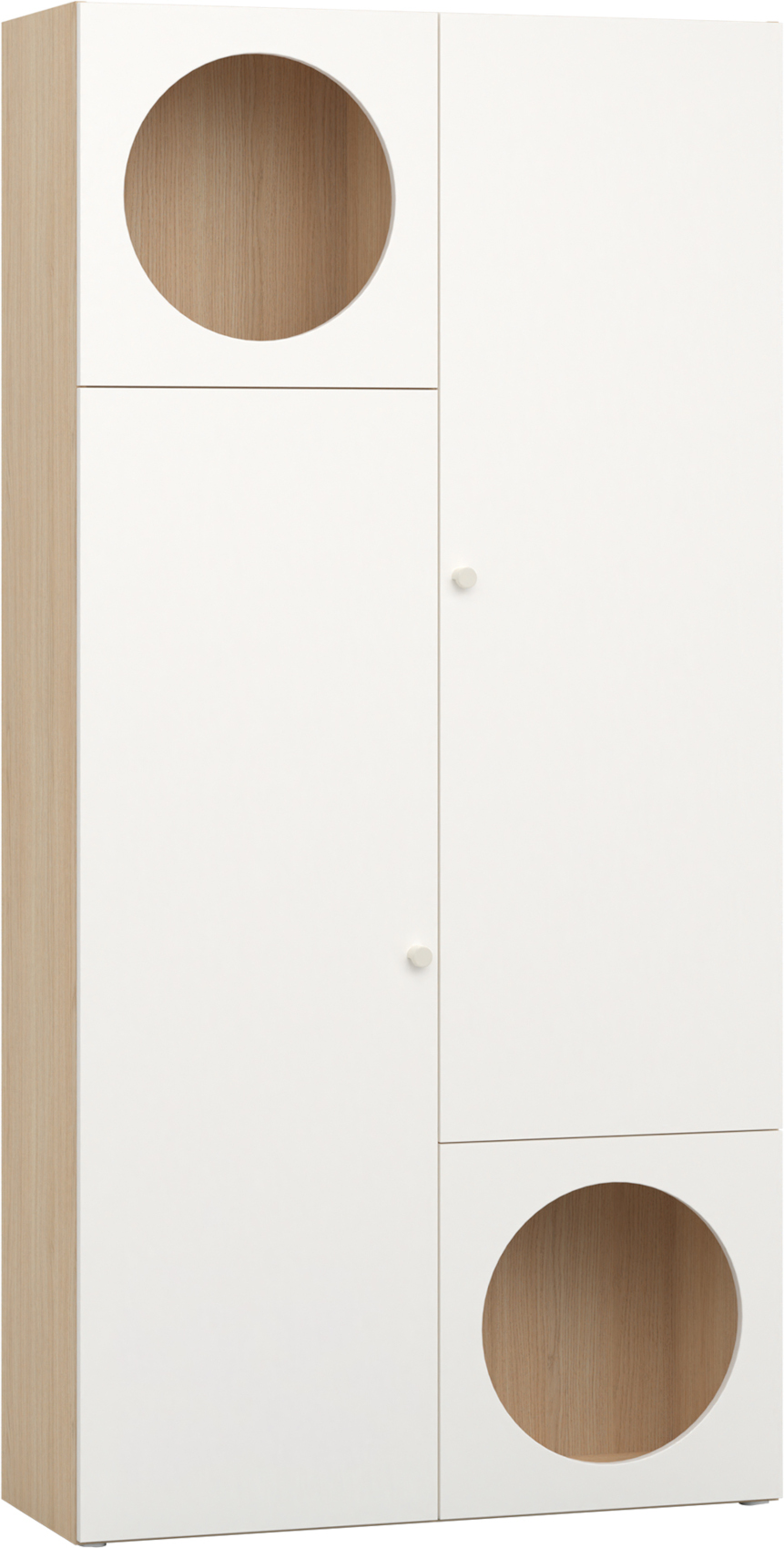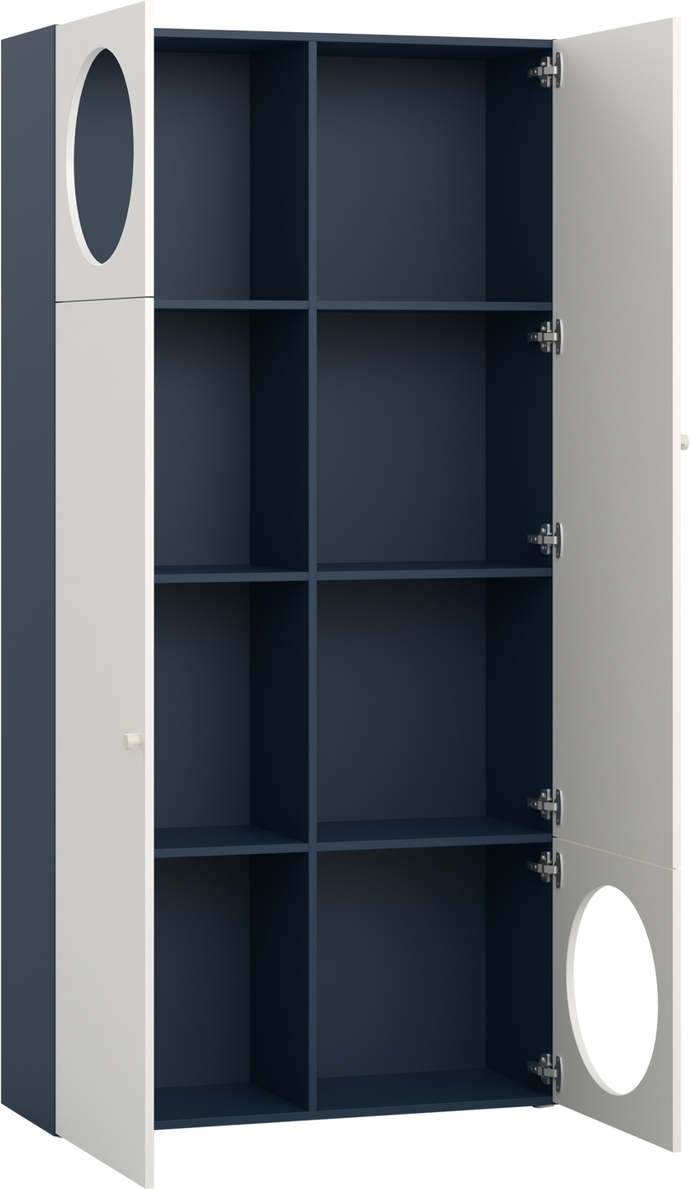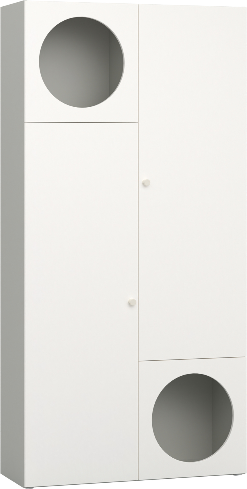 Součástí regálu jsou 2 dvířka s horním a spodním otvorem. Za dvířky je vloženo 6 polic, které tak vytváří 8 otevřených nik. Ty můžete doplnit doplňkovými policemi Reli a výplní Reli, díky kterým udržíte v regálu pořádek.