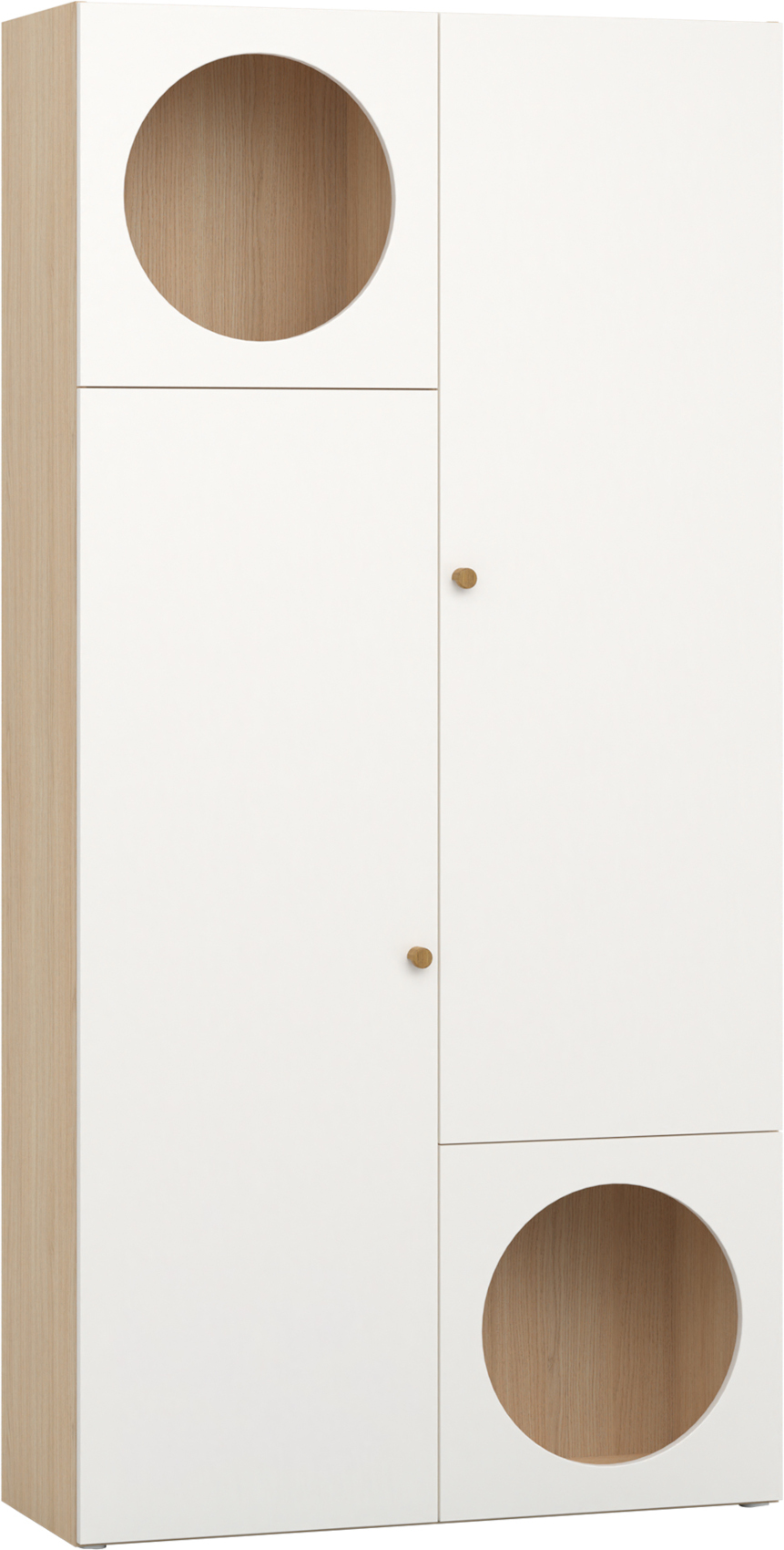 Široký regál Reli 5 vás zaujme svým jednoduchým designem s moderními prvky v alabastrově bílém odstínu v kombinaci s barvou dle vašeho výběru. Je vyroben z kvalitního lamina o síle 16 mm, která vám zaručí odolnost vůči poškození. Úchyty jsou z přírodního bukového dřeva. Můžete si vybrat ze 3 odstínů - dub, indigo nebo šedá. Dvířka mají zabudovaný systém tichého dovíraní.