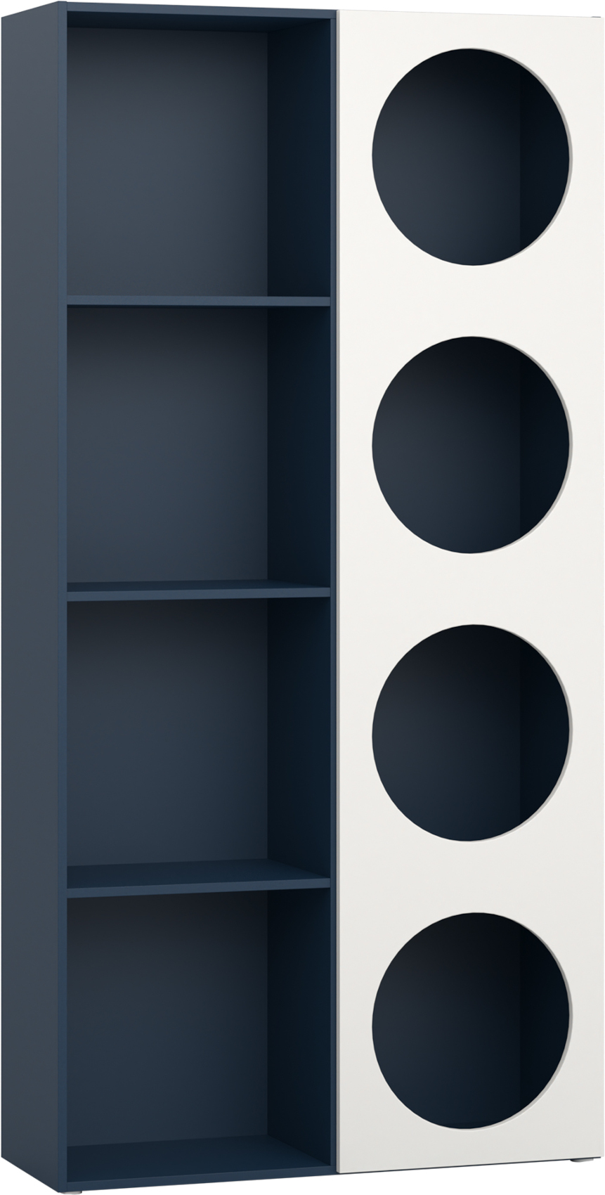 Široký regál Reli 6 vás zaujme svým jedinečným designem s moderními prvky v alabastrově bílém odstínu v kombinaci s barvou dle vašeho výběru. Je vyroben z kvalitního lamina o síle 16 mm, která vám zaručí odolnost vůči poškození. Můžete si vybrat ze 3 odstínů - dub, indigo nebo šedá.