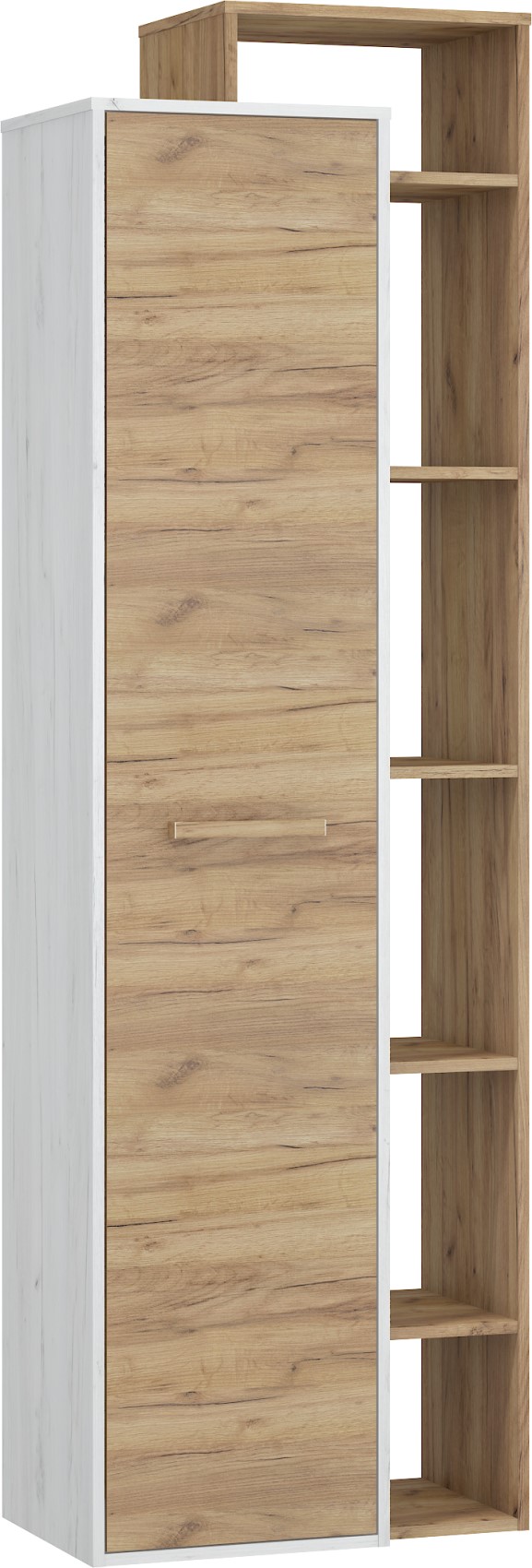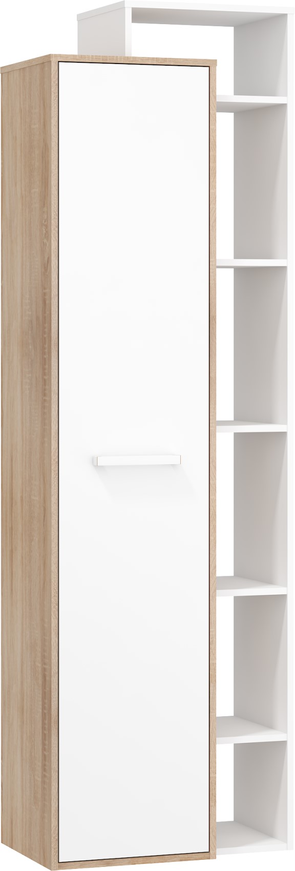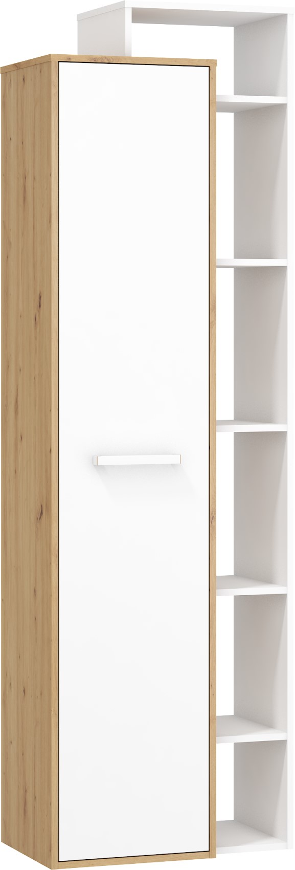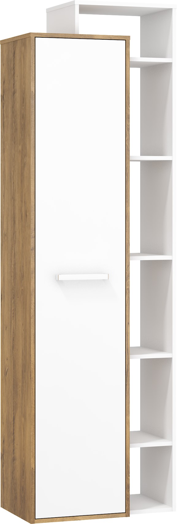 Součástí jsou 1 dvířka, za kterými jsou vloženy 4 lakované police, které můžete využít na uskladnění různých nezbytností. Na pravé straně je 6 otevřených nik k vystavení vašich oblíbených dekorací.