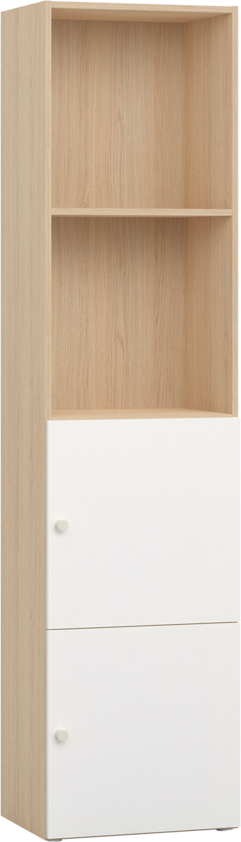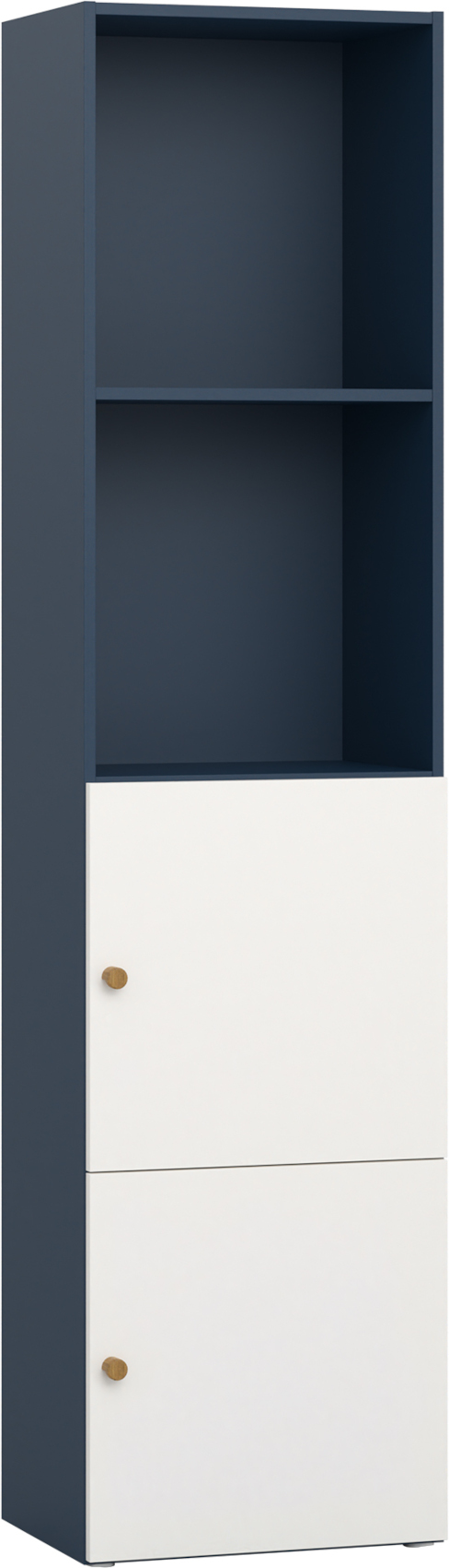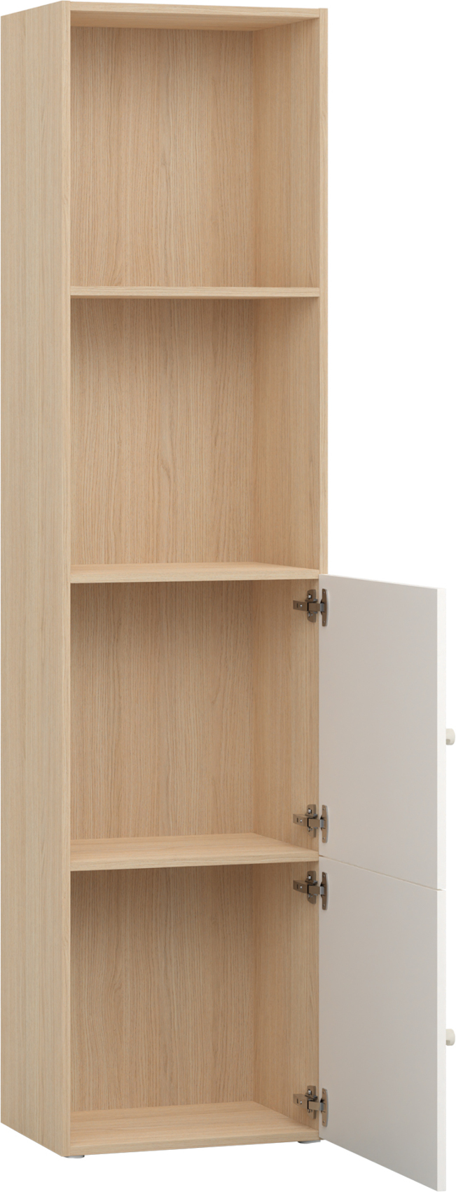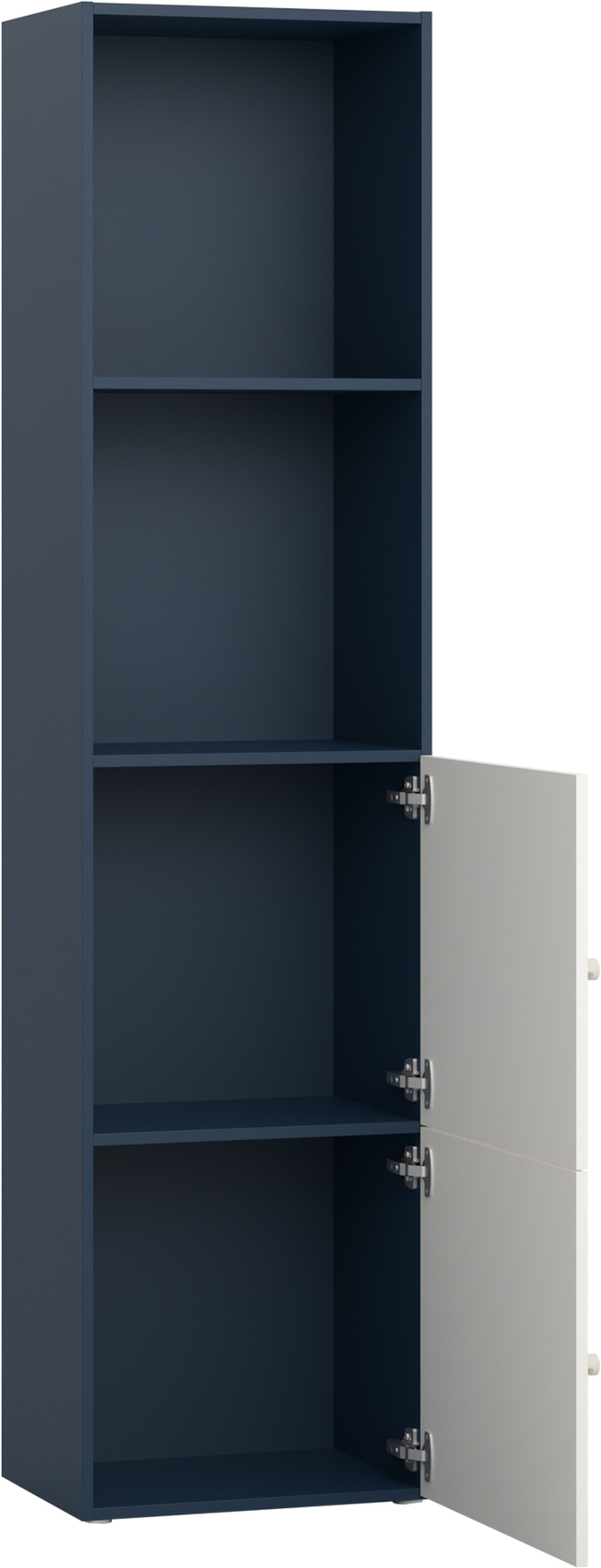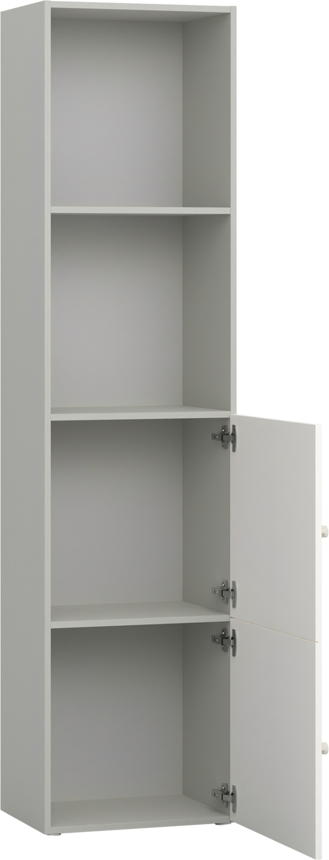 Úzký regál Reli 1 vás zaujme svým jednoduchým designem s moderními prvky v alabastrově bílém odstínu v kombinaci s barvou dle vašeho výběru. Je vyroben z kvalitního lamina o síle 16 mm, která vám zaručí odolnost vůči poškození. Úchyty jsou z přírodního bukového dřeva. Můžete si vybrat ze 3 odstínů - dub, indigo nebo šedá. Dvířka mají zabudovaný systém tichého dovíraní.