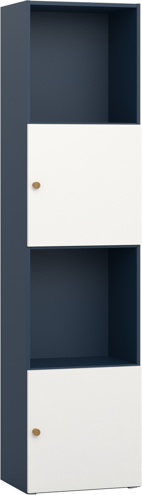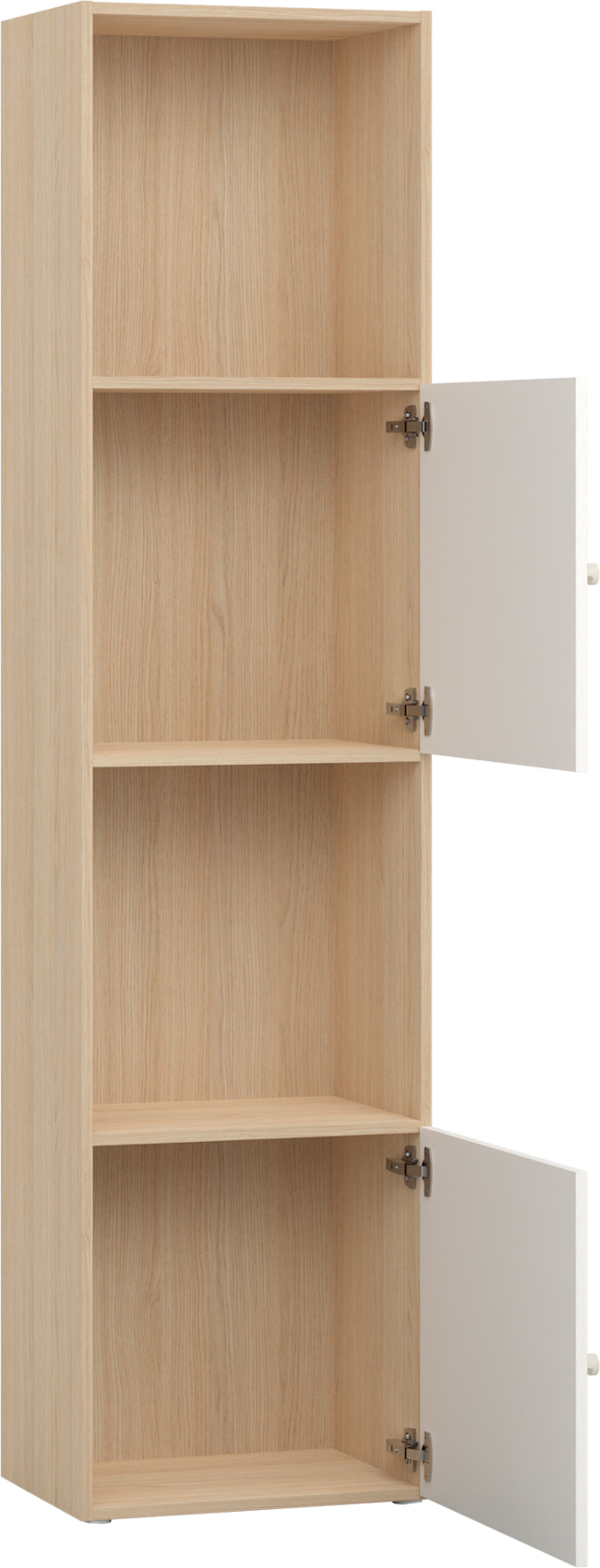 Úzký regál Reli 2 vás zaujme svým jednoduchým designem s moderními prvky v alabastrově bílém odstínu v kombinaci s barvou dle vašeho výběru. Je vyroben z kvalitního lamina o síle 16 mm, která vám zaručí odolnost vůči poškození. Úchyty jsou z přírodního bukového dřeva. Můžete si vybrat ze 3 odstínů - dub, indigo nebo šedá. Dvířka mají zabudovaný systém tichého dovíraní.