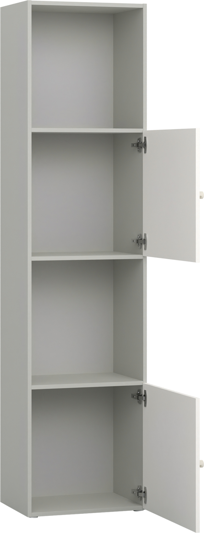 Součástí regálu jsou 2 samostatná dvířka a 2 otevřené niky. V nich si můžete vystavit své oblíbené knihy, dekorace či doplňkové police Relivýplň Reli.