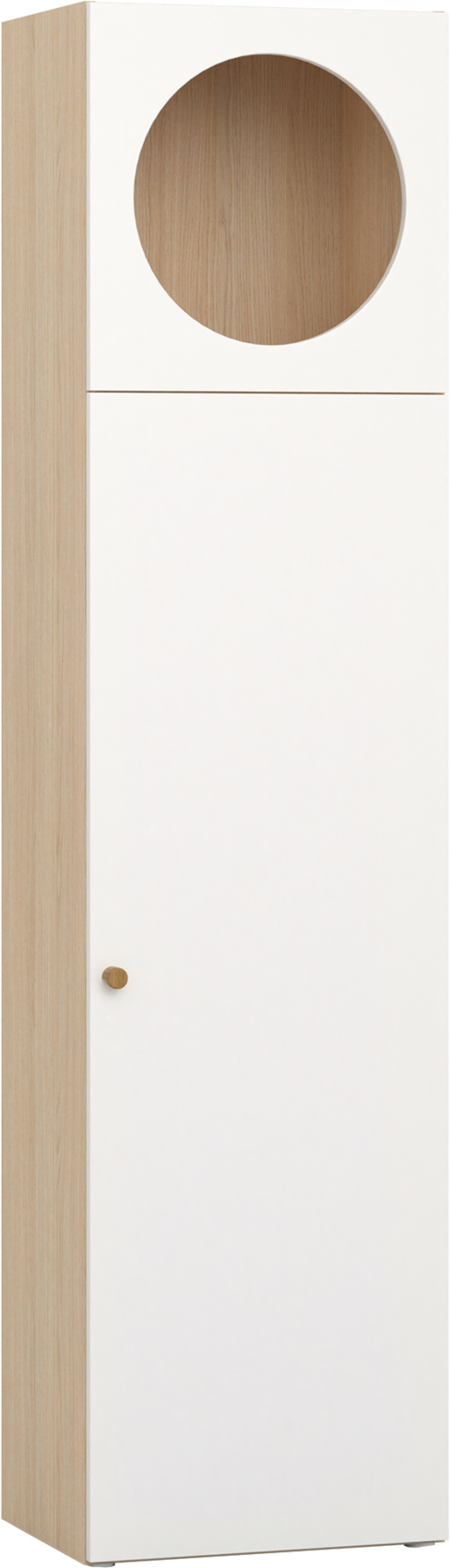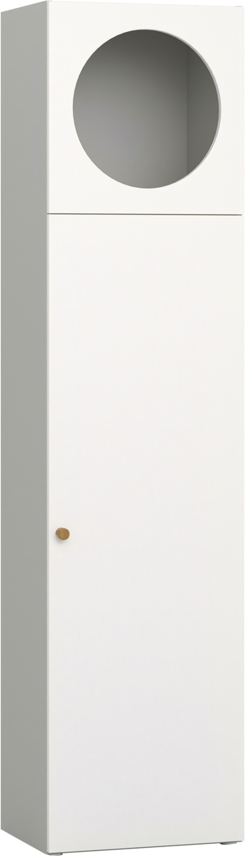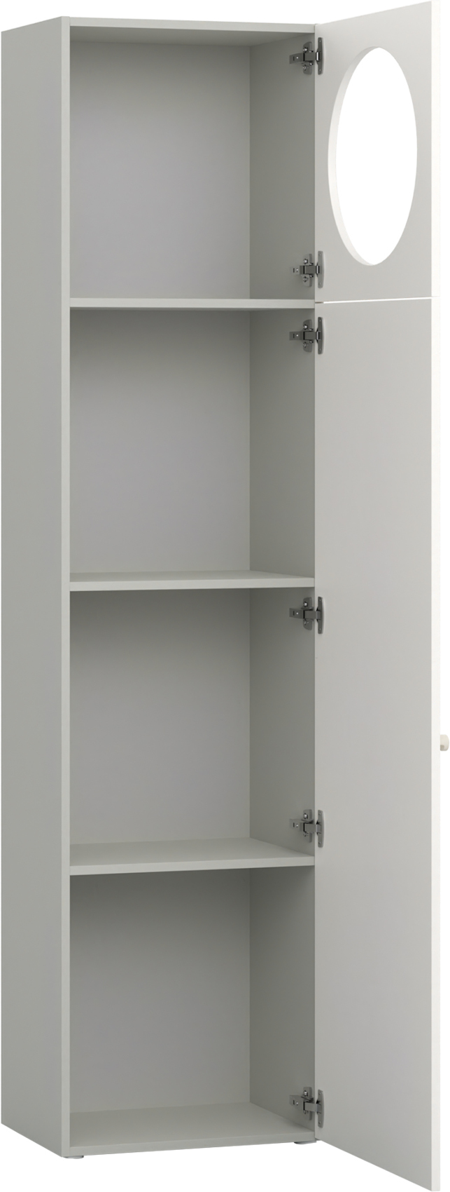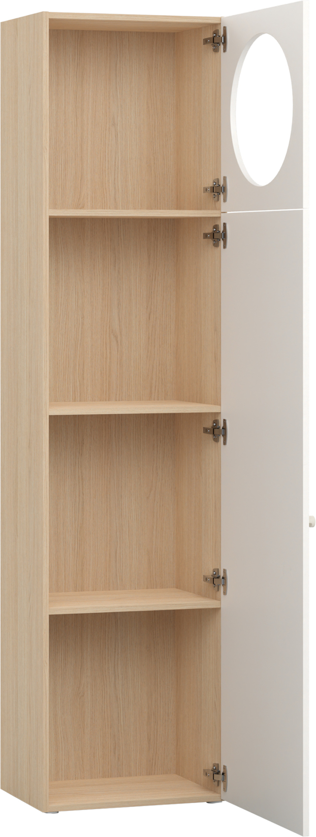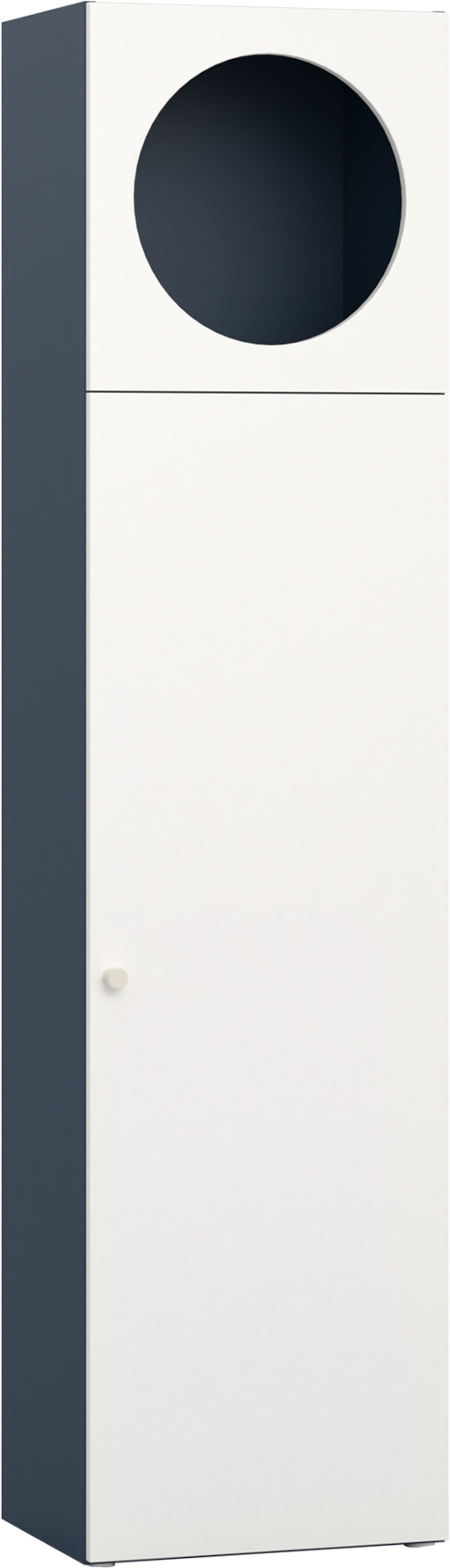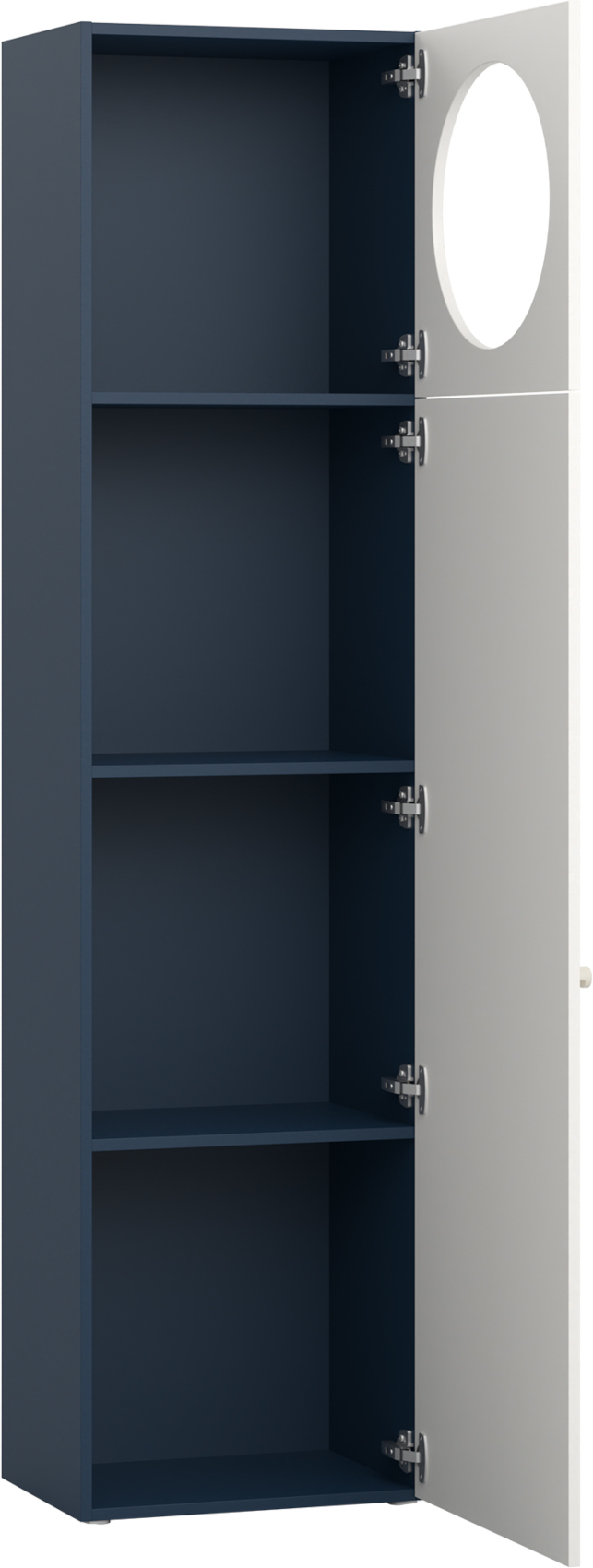 Úzký regál Reli 4 vás zaujme svým jednoduchým designem s moderními prvky v alabastrově bílém odstínu v kombinaci s barvou dle vašeho výběru. Je vyroben z kvalitního lamina o síle 16 mm, která vám zaručí odolnost vůči poškození. Úchyty jsou z přírodního bukového dřeva. Můžete si vybrat ze 3 odstínů - dub, indigo nebo šedá. Dvířka mají zabudovaný systém tichého dovíraní.