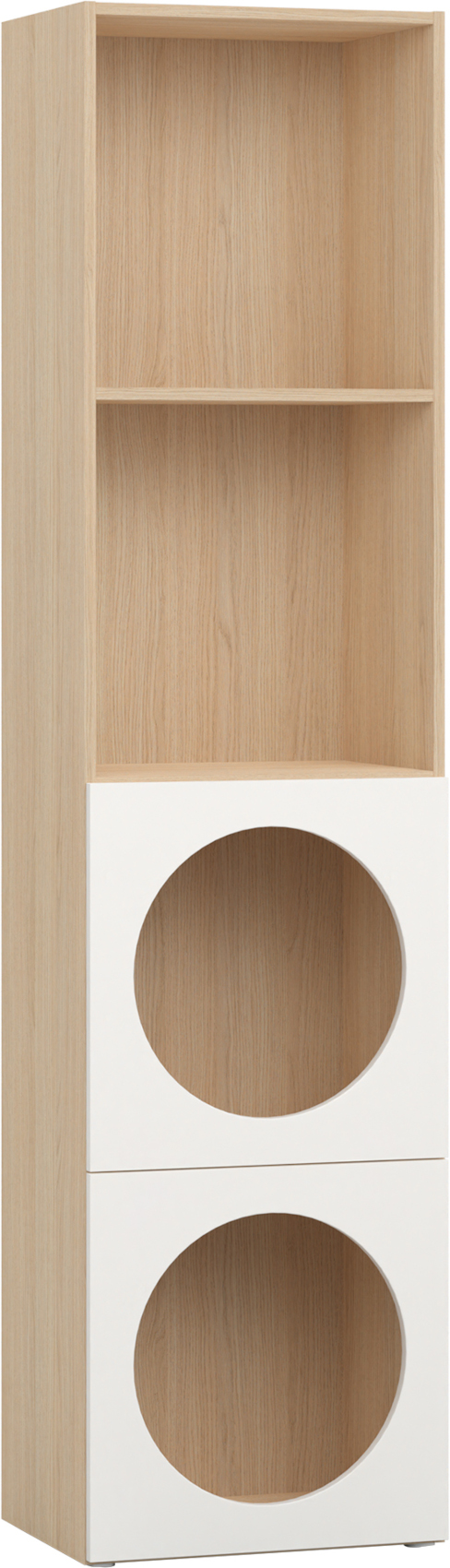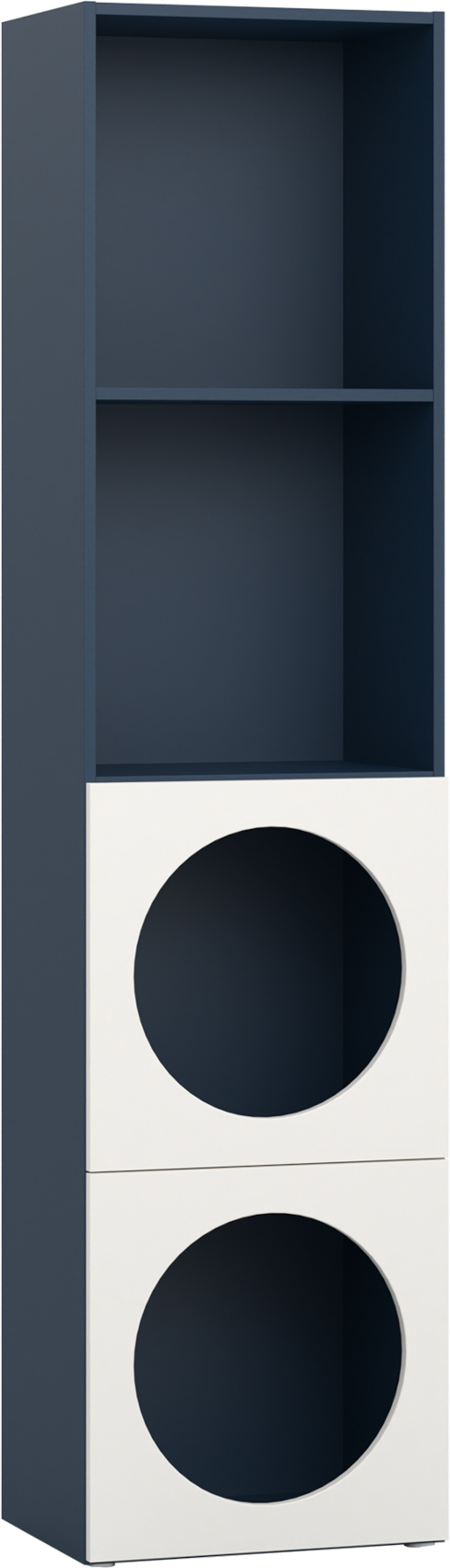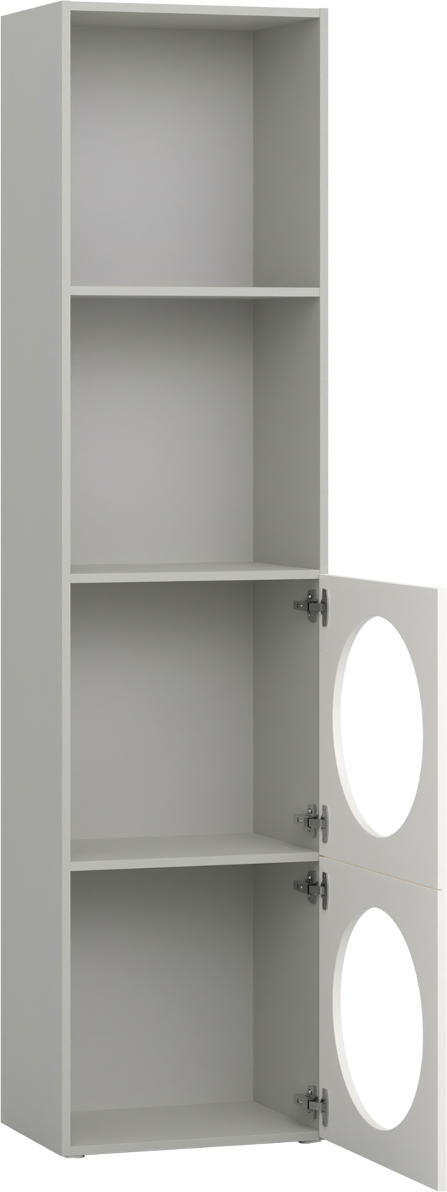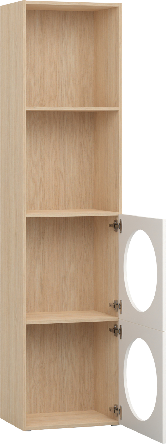 Úzký regál Reli 6 vás zaujme svým jedinečným designem s moderními prvky v alabastrově bílém odstínu v kombinaci s barvou dle vašeho výběru. Je vyroben z kvalitního lamina o síle 16 mm, která vám zaručí odolnost vůči poškození. Můžete si vybrat ze 3 odstínů - dub, indigo nebo šedá. Dvířka mají zabudovaný systém tichého dovírání.